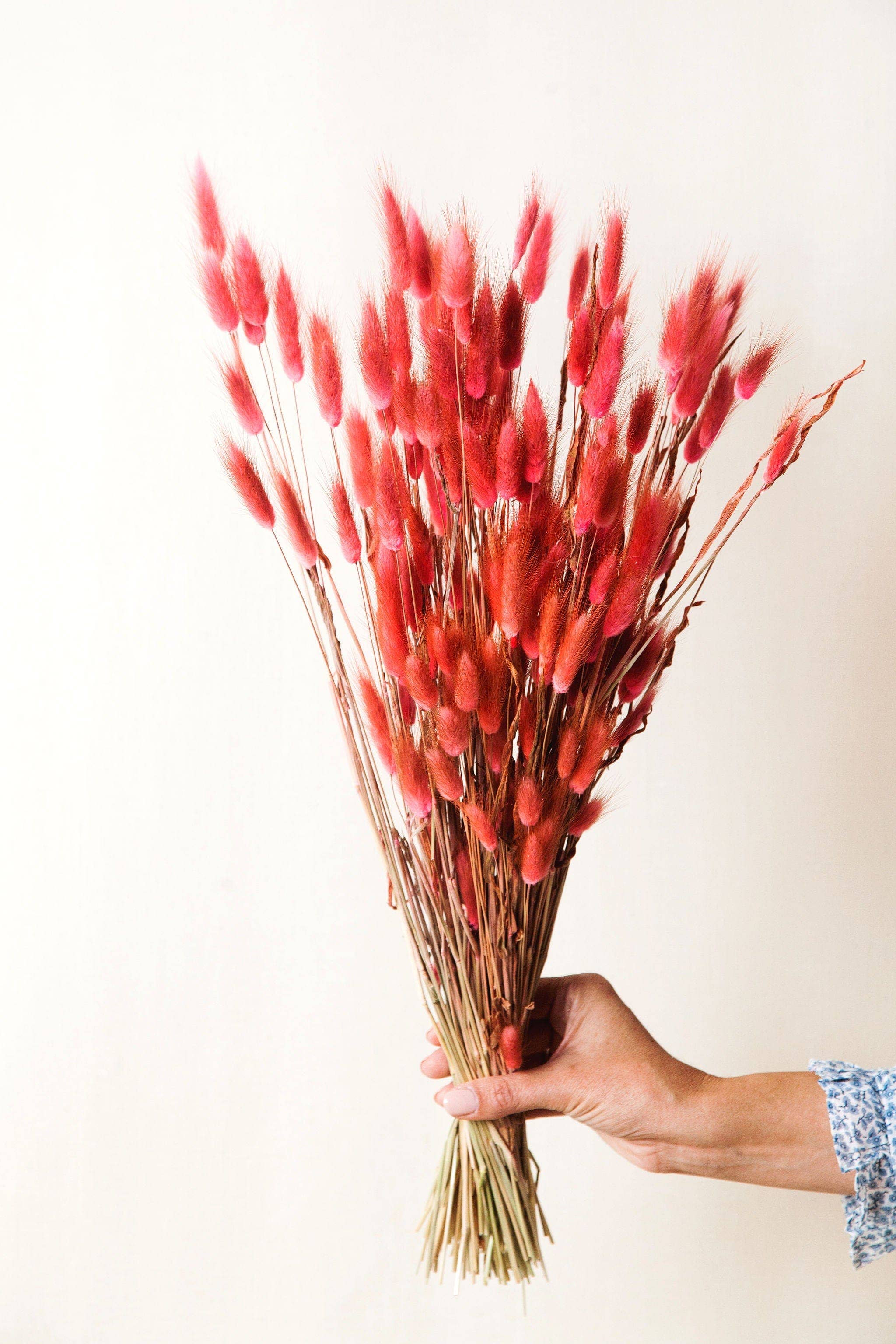 Strawberry Pink Bunny Tail Dried Flowers, Decorative Floral Arrangement