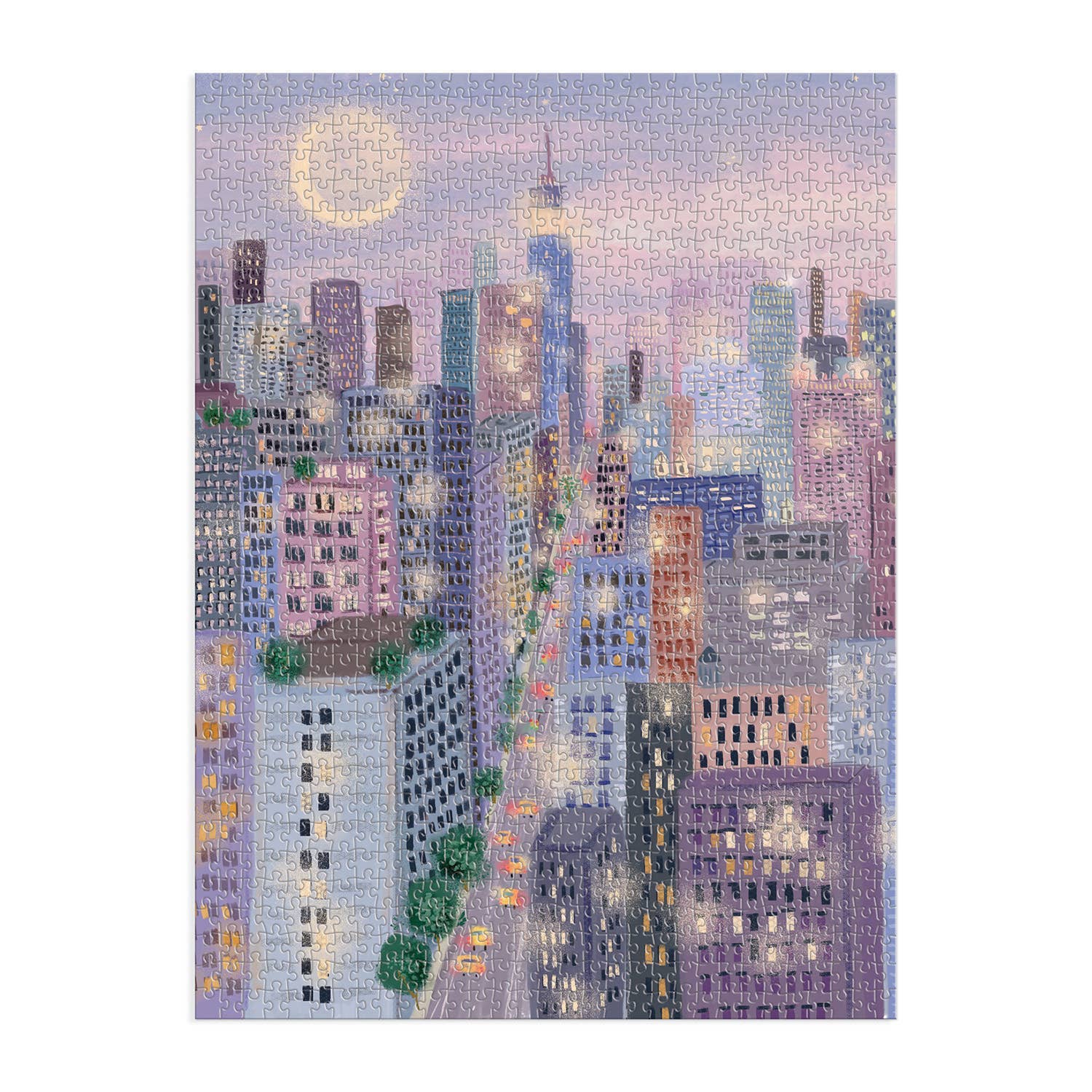 The City Lights 1000 Piece Puzzle features a lavender lit city scene at night by artist Joy Laforme. 1000 Pieces, Ribbon Cut • Box: 8 x 8 x 2.5”, 203 x 203 x 64 mm • Puzzle: 27 x 20”, 508 x 686 mm • Includes Color Puzzle Insert with Puzzle Image • Puzzle greyboard contains 90% recycled paper. Packaging contains 70% recycled paper and is made responsibly from FSC-certified material. Printed with nontoxic inks.