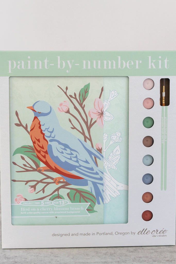 Unwind at home with this "Bird on a Cherry Blossom Branch" paint by number kit. You can have a finished project in between 3-5 hours.