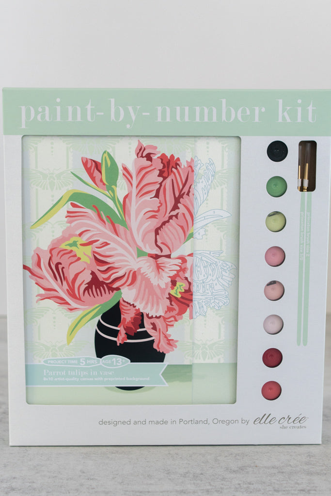 Unwind at home with this "Parrot Tulips" paint by number kit. You can have a finished project in between 3-5 hours.