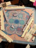 Delicate, feminine, and full of charm, the Peri-Twinkle Mahjong Mat is a beautiful collaboration with Fort Worth-based fashion designer Sheridan French, bringing a soft and sophisticated touch to your game. Designed with elegant periwinkle, coral, and pink hues, this mat captures a serene, dreamlike quality that effortlessly elevates any game night. Perfectly sized and thoughtfully crafted, this mat is as graceful as it is functional. It is a timeless design for those who appreciate elegance with a pop of playfulness. The mat comes rolled in a canvas drawstring bag. Dimensions: 33" x33"