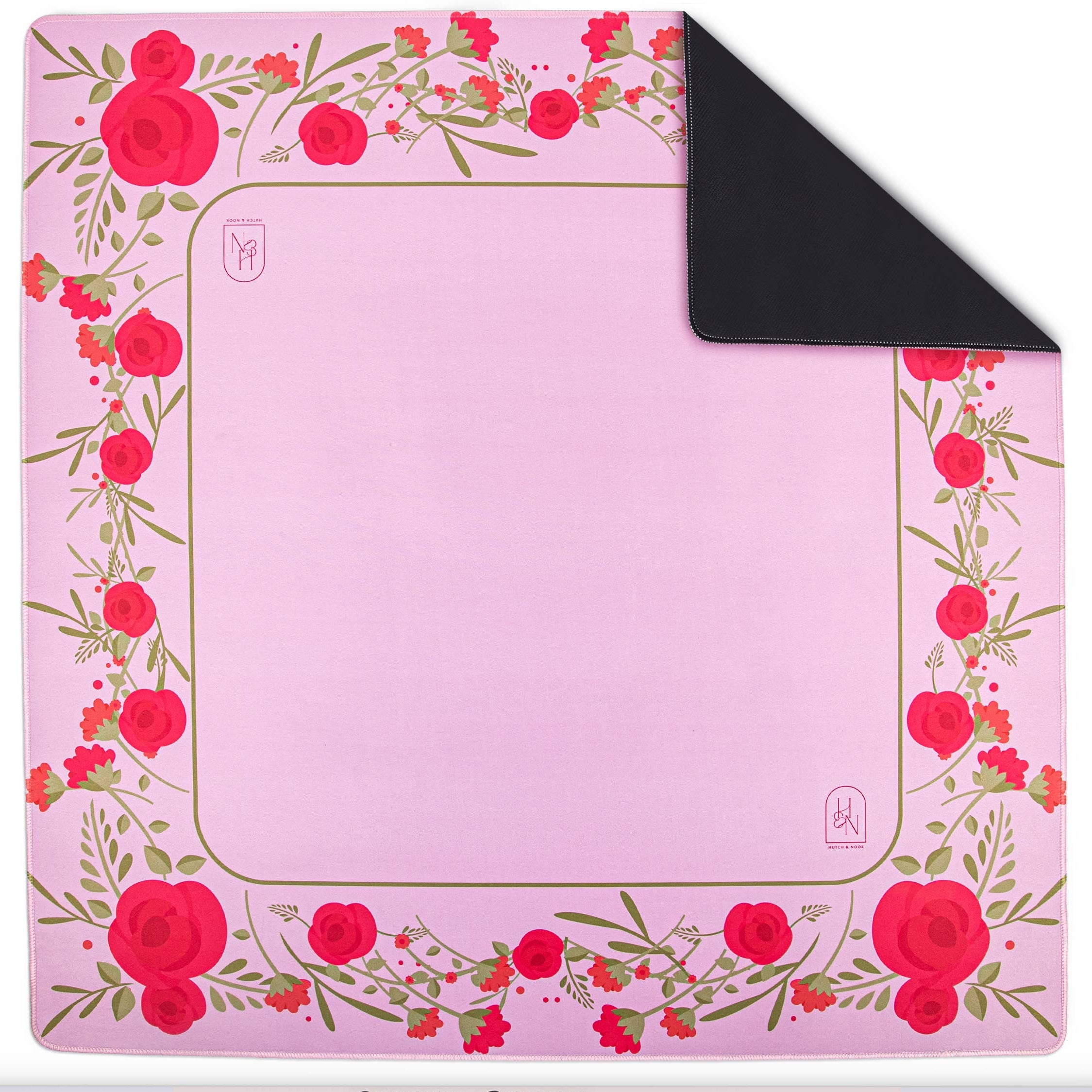 Mahjong Mat in Pink with Rose Flowers Border