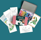 Paint your own watercolor Tropical Florals with these outlines and paints. This kit is compact and portable- everything packaged together in a tin painting box. Just add water to the included water brush and you can paint anywhere!