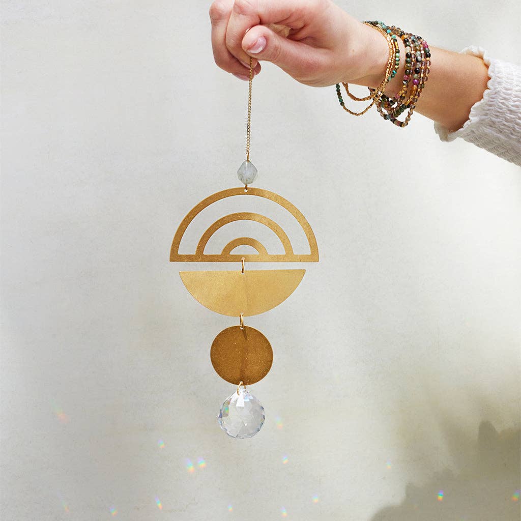 Suncatcher with Ginko Leaves, Amazonite and Crystal