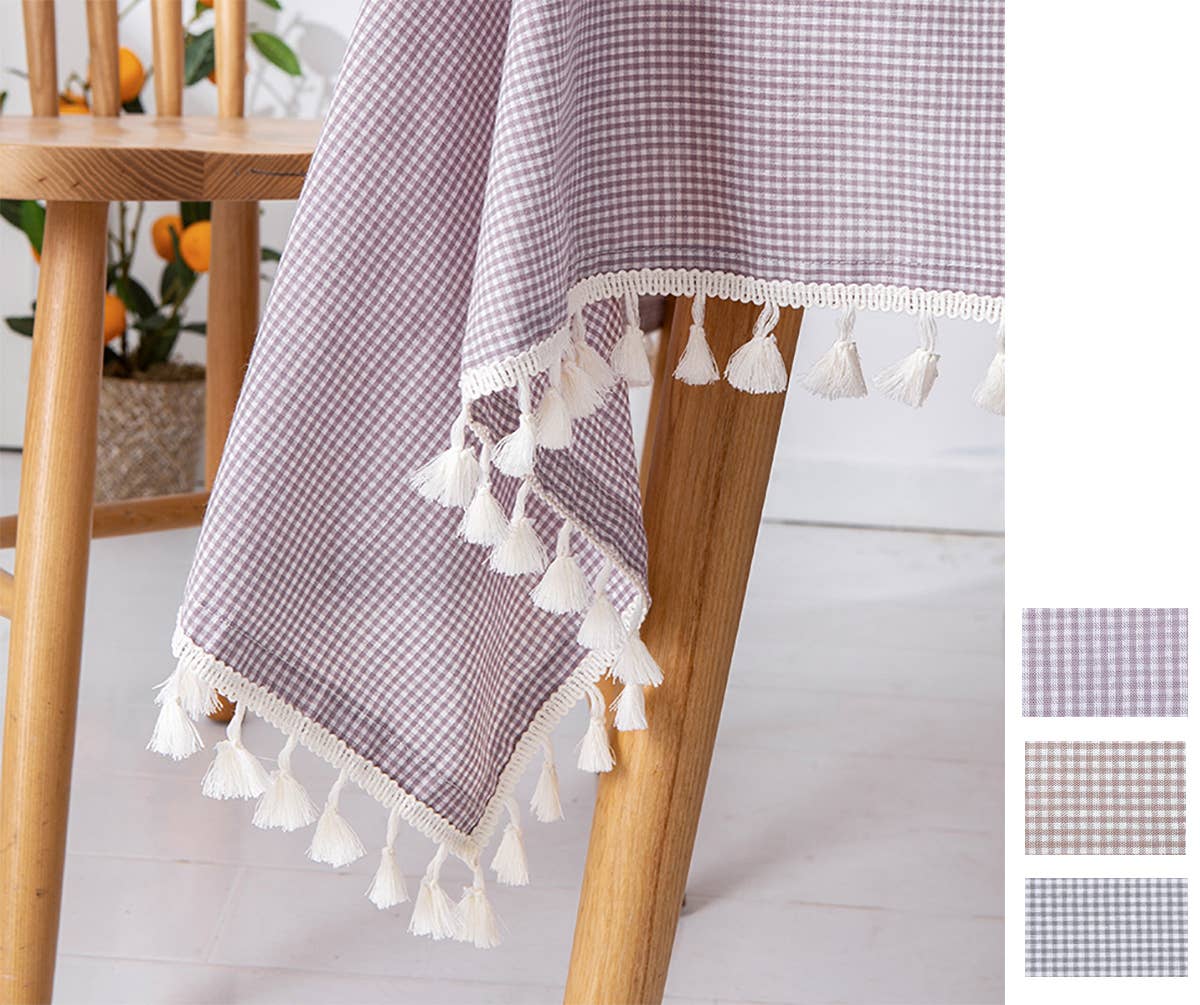 Square Tablecloth, Purple Gingham Cotton, Mahjong Tablecloth