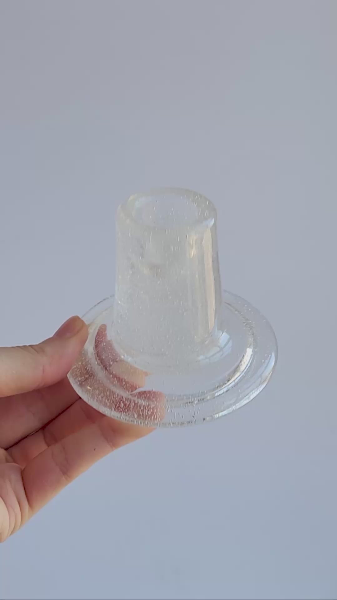 Expertly crafted from recycled bubble glass, this glossy candleholder is the perfect complement to a taper candle. Each piece is unique, with slight variations in design, making for a classic and timeless addition to your home decor. Whether as a gift or for personal use, this candleholder is sure to delight with its simplicity and elegance. 7cm H x 8.5cm D (Base) Standard candle fit (22mm D) 250g