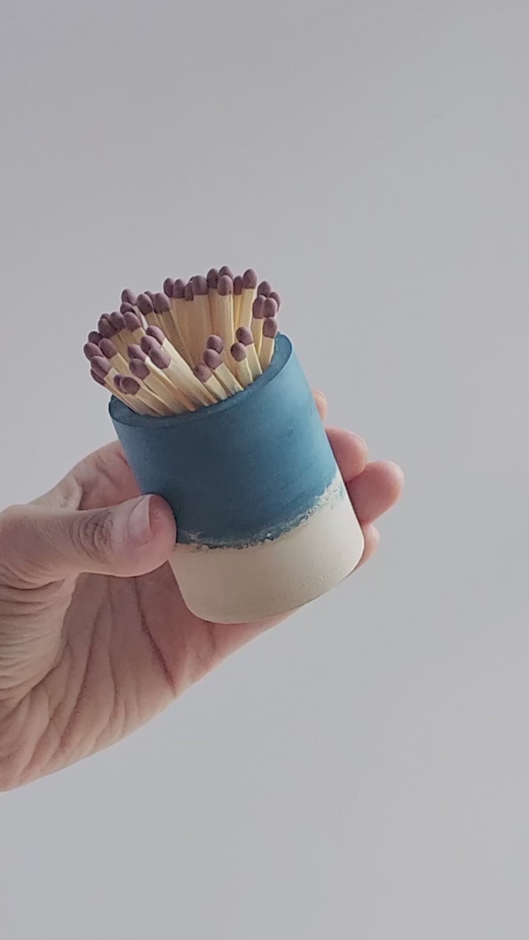 Jesmonite two tone Match Striker Pot. Approx. 40 matches included. Striker pad on the base.