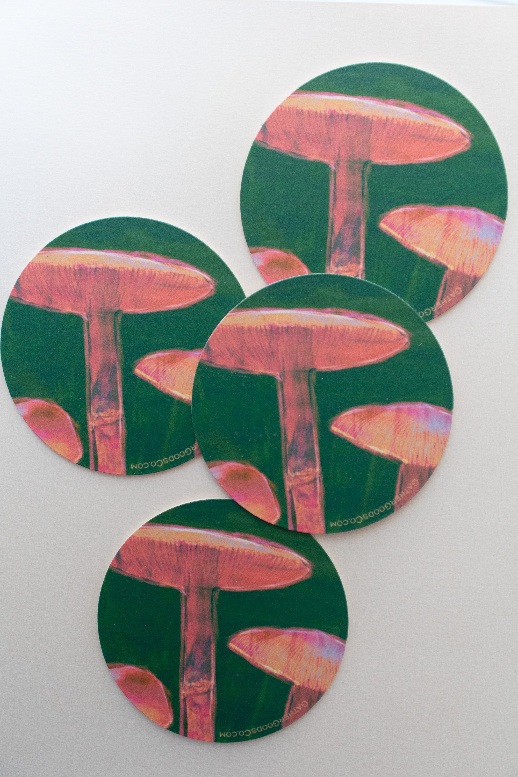 Mushroom Art Coasters, Set of Four, Colorful Home Decor For The Outdoor