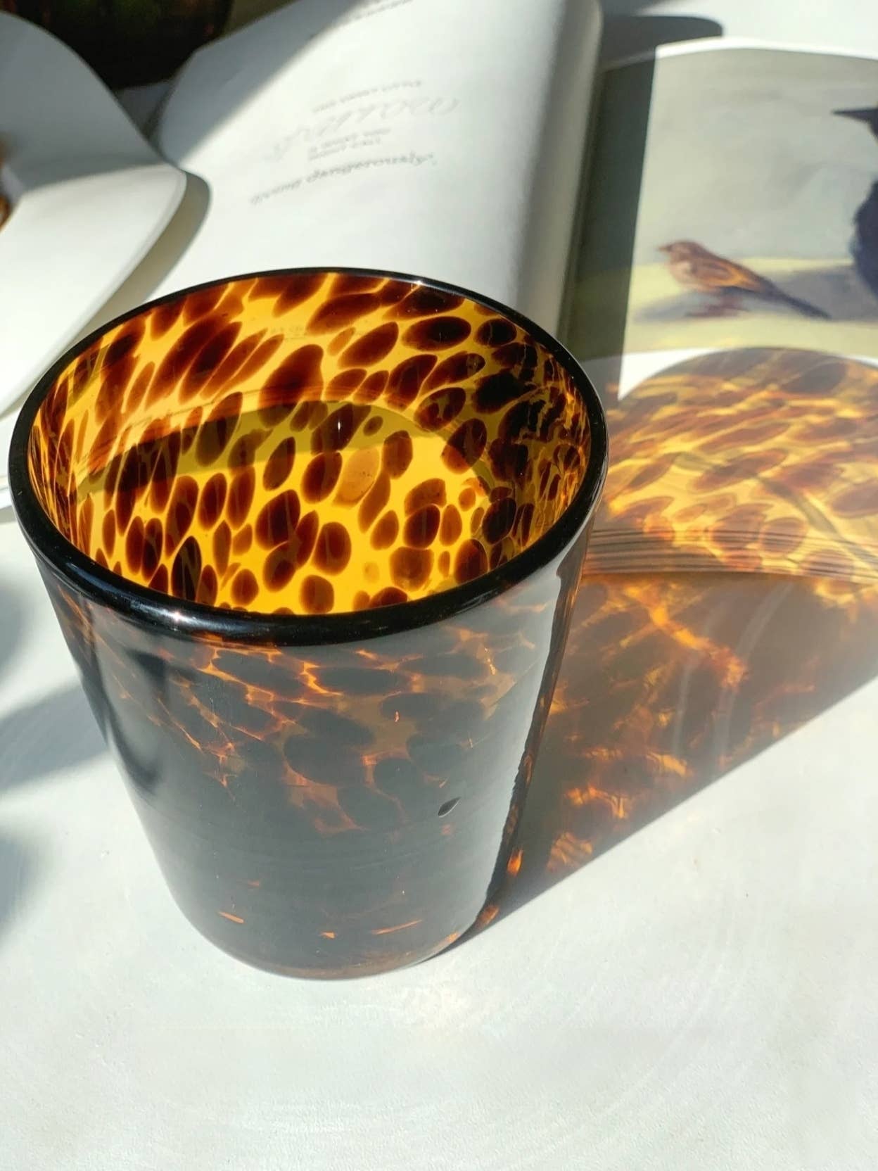 Tortoiseshell Glass Cup, Slanted Sides
