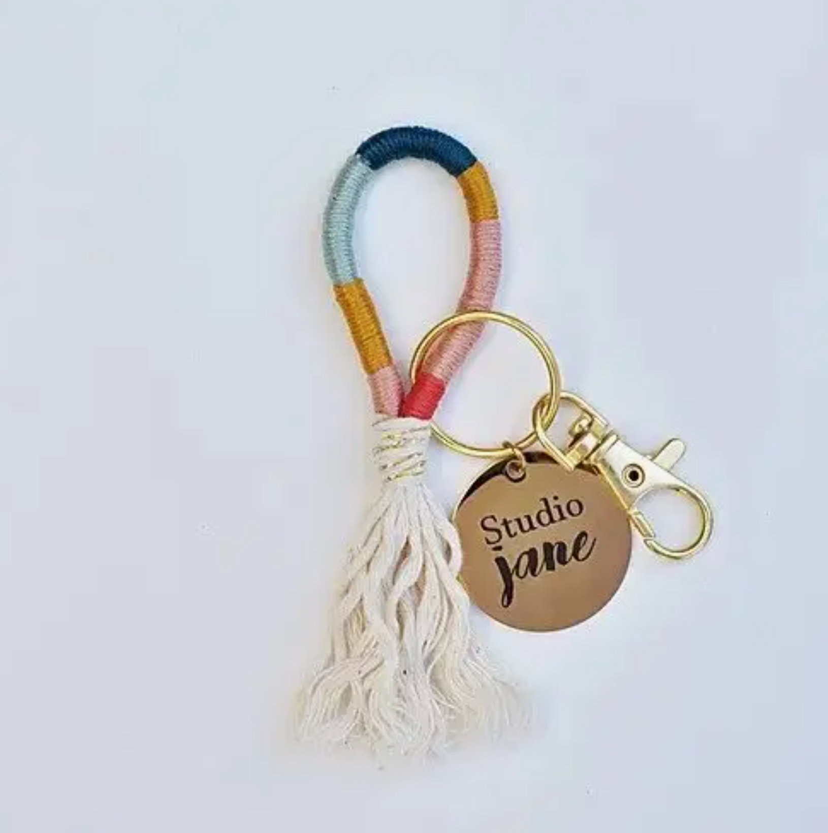 Copy of Fiber Wrapped Keychain, Pink, Blue Gold