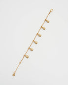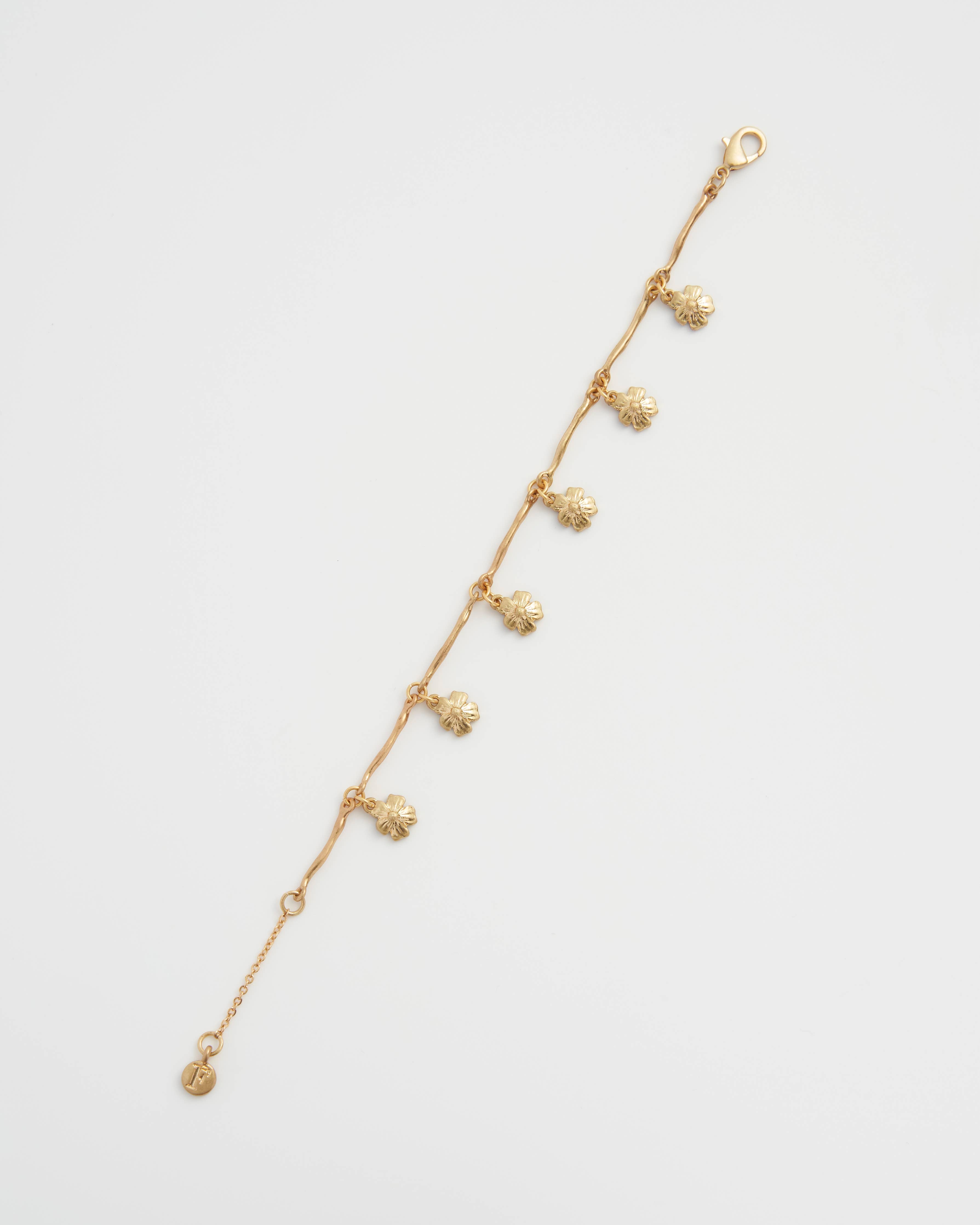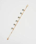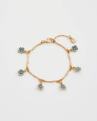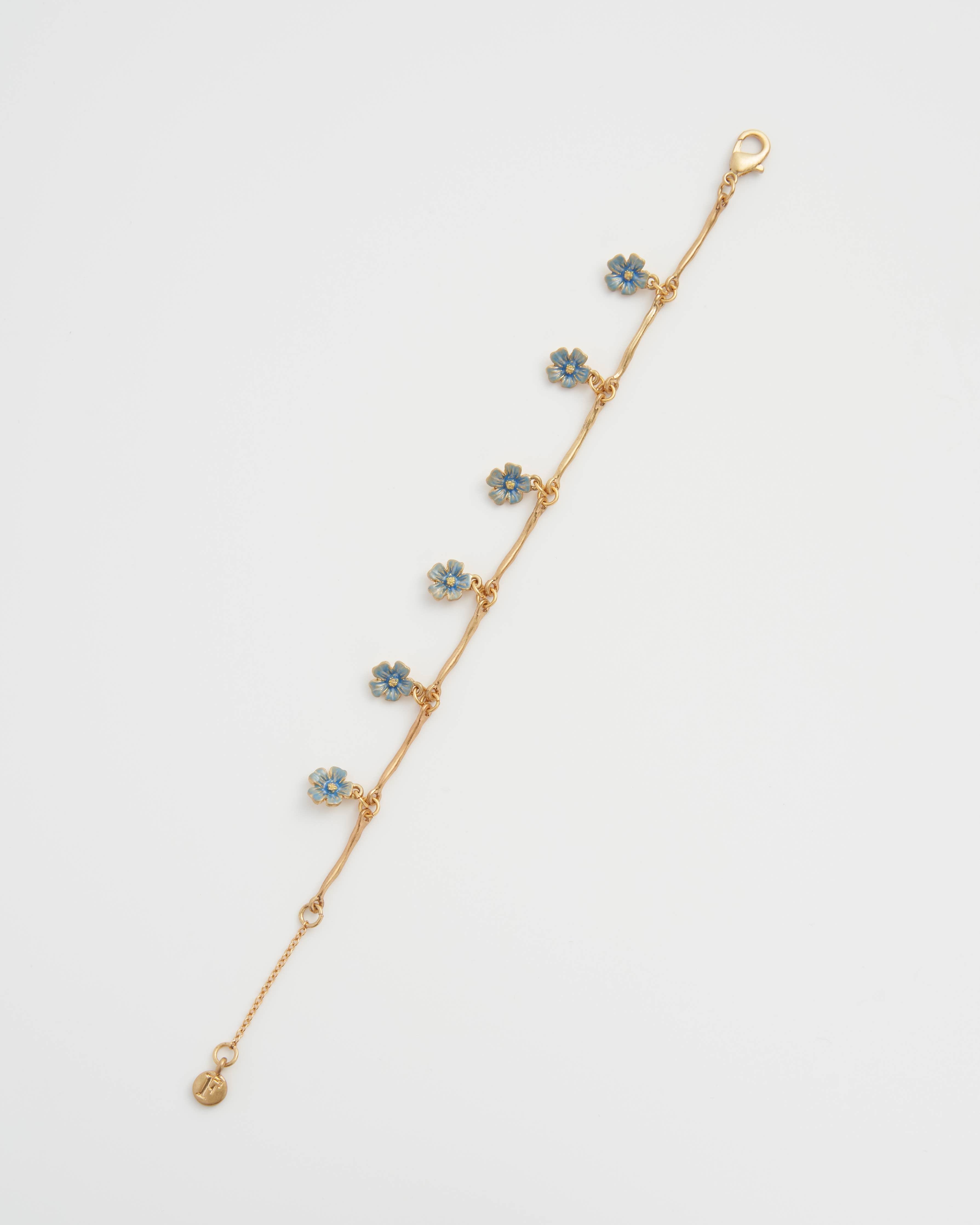Elevate your style with the enchanting Forget-Me-Not Bracelet, a true testament to beauty and sentiment. This exquisite piece features intricately crafted enamel flowers, each blooming in stunning shades of blue and green, reminiscent of serene gardens in spring. These delicate flowers are artfully connected by gold-plated forms that echo the natural elegance of the petals, creating a harmonious and dynamic design. Charm: 22ct Worn gold plated brass, zinc alloy, enamel Chain: 22ct Worn gold plated brass 16.5cm (6.5"") Chain with 2.5cm (1"") extender; Charm: 10mm height x 20mm width Wipe clean with a soft cloth