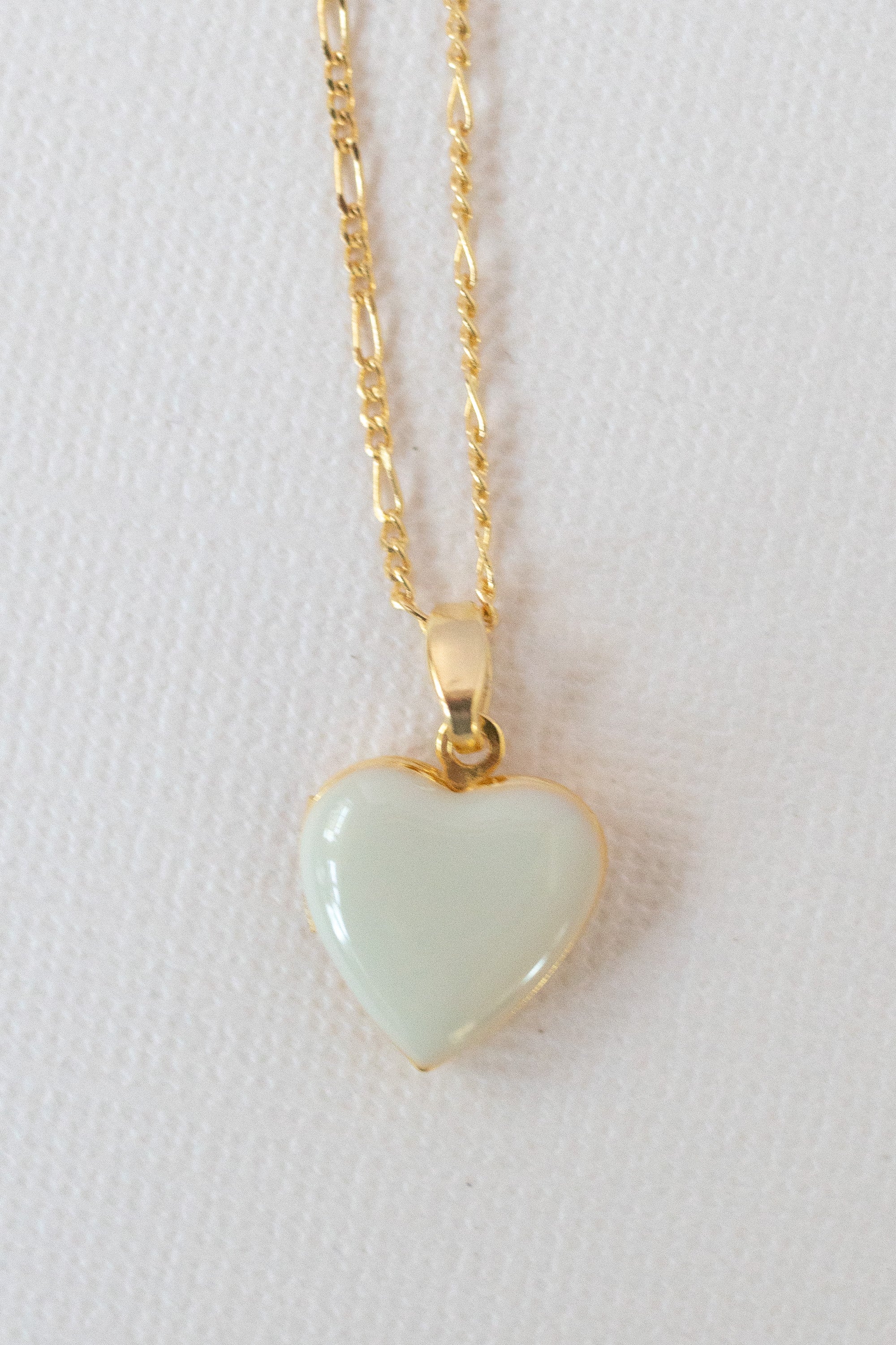 Lockets developed out of talisman jewelry worn to ward of evil spirits. They came to signify: love, honor, a pledge of allegiance, a symbol of mourning, a commitment or a window to the past. Lockets have been used to carry: powder, miniature portraits, ashes, herbal remedies, poison and perfume-soaked fabric. .5" heart locket on 20" figero chain. 14k gold over brass.