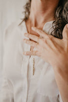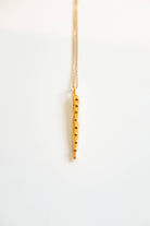 Organic pendant hand carved in wax and cast in recycled bronze. Approx. 2” in length. 18" gold plated brass chain.