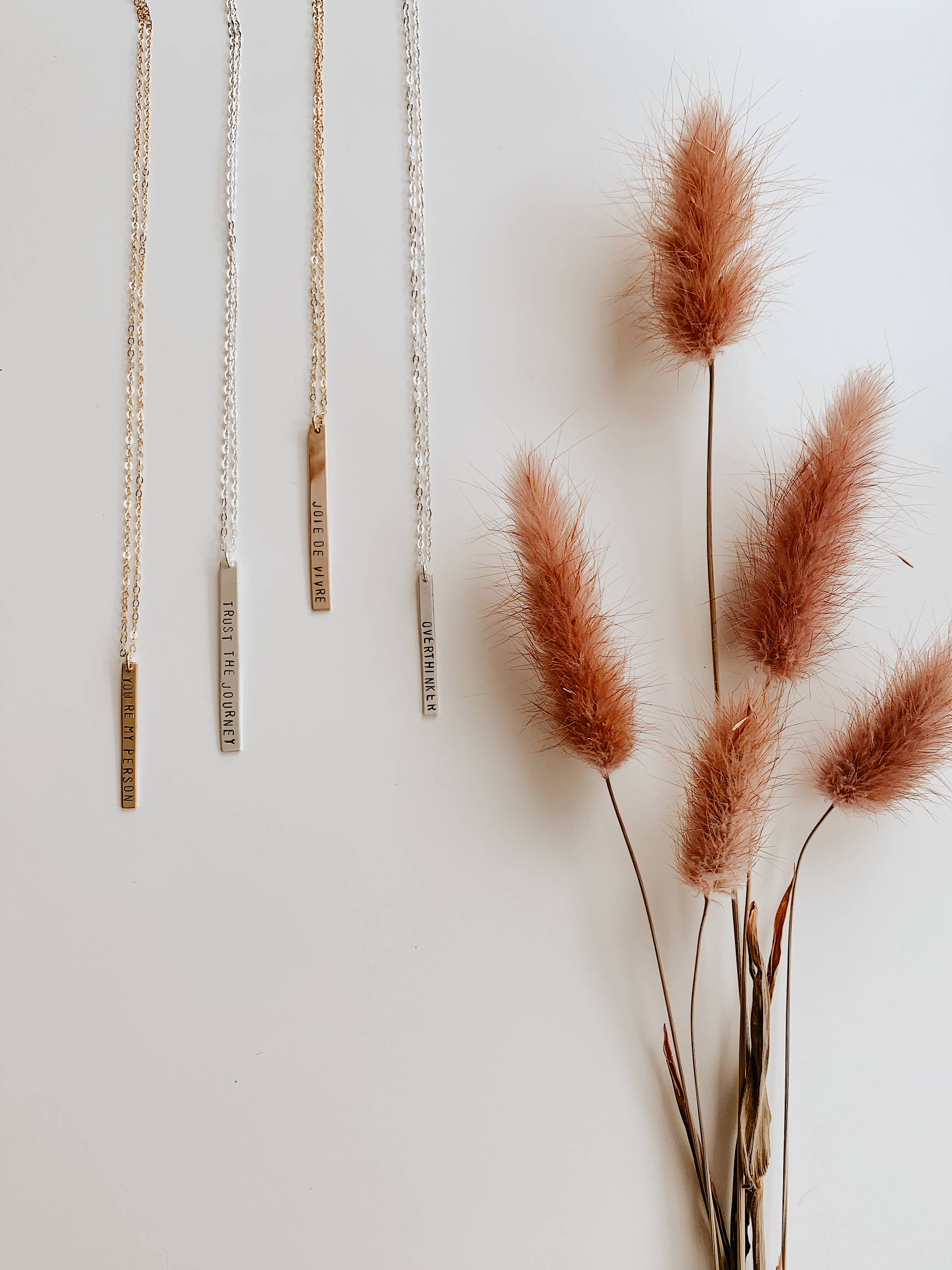 Stamped Vertical Bar Necklace, Feminist