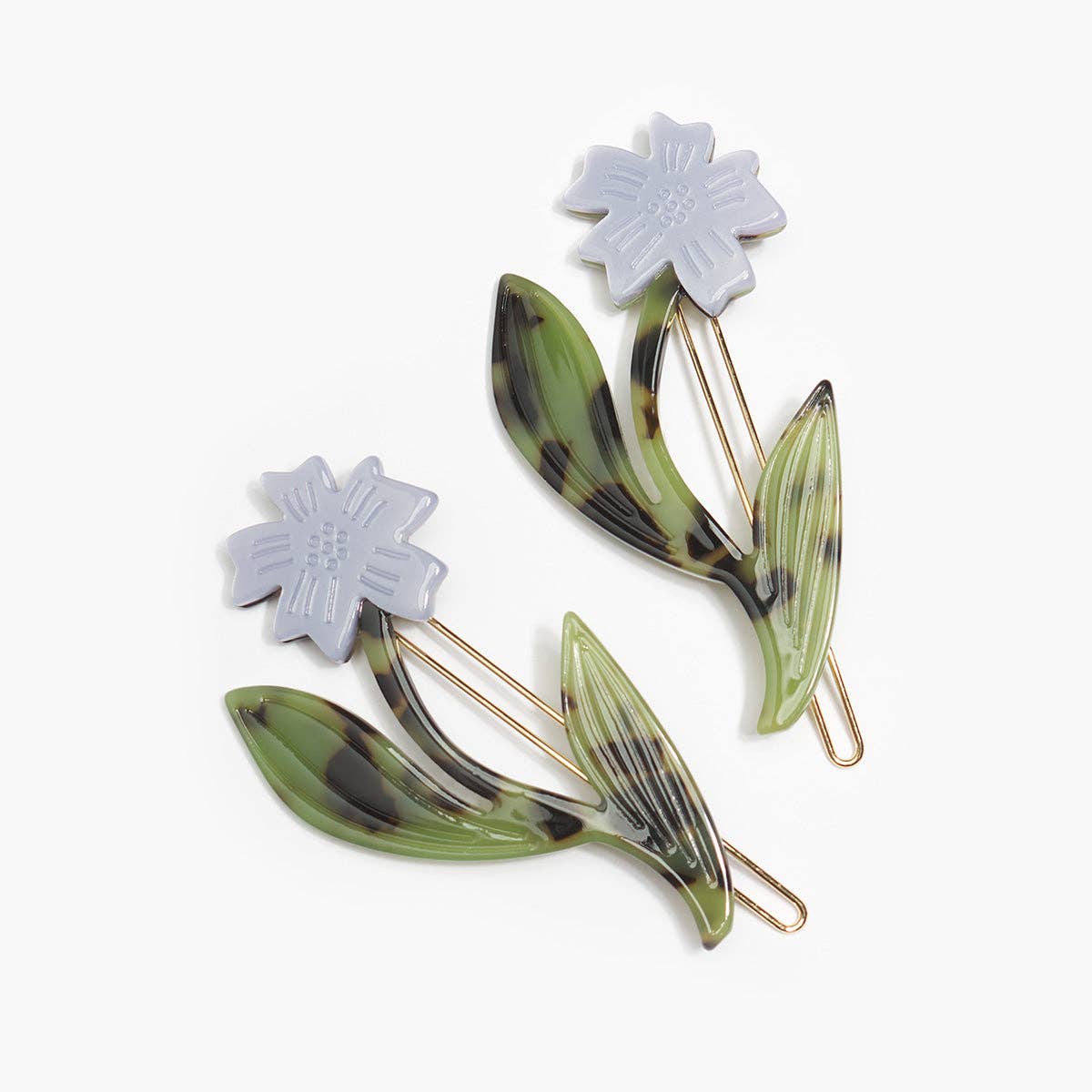 Flower Alligator Hair Clip in Light Blue and Gold