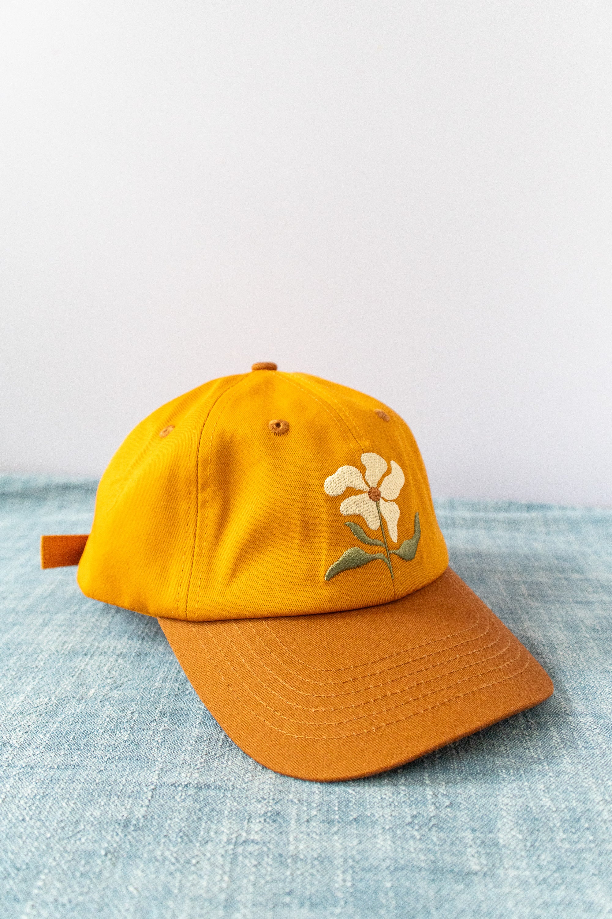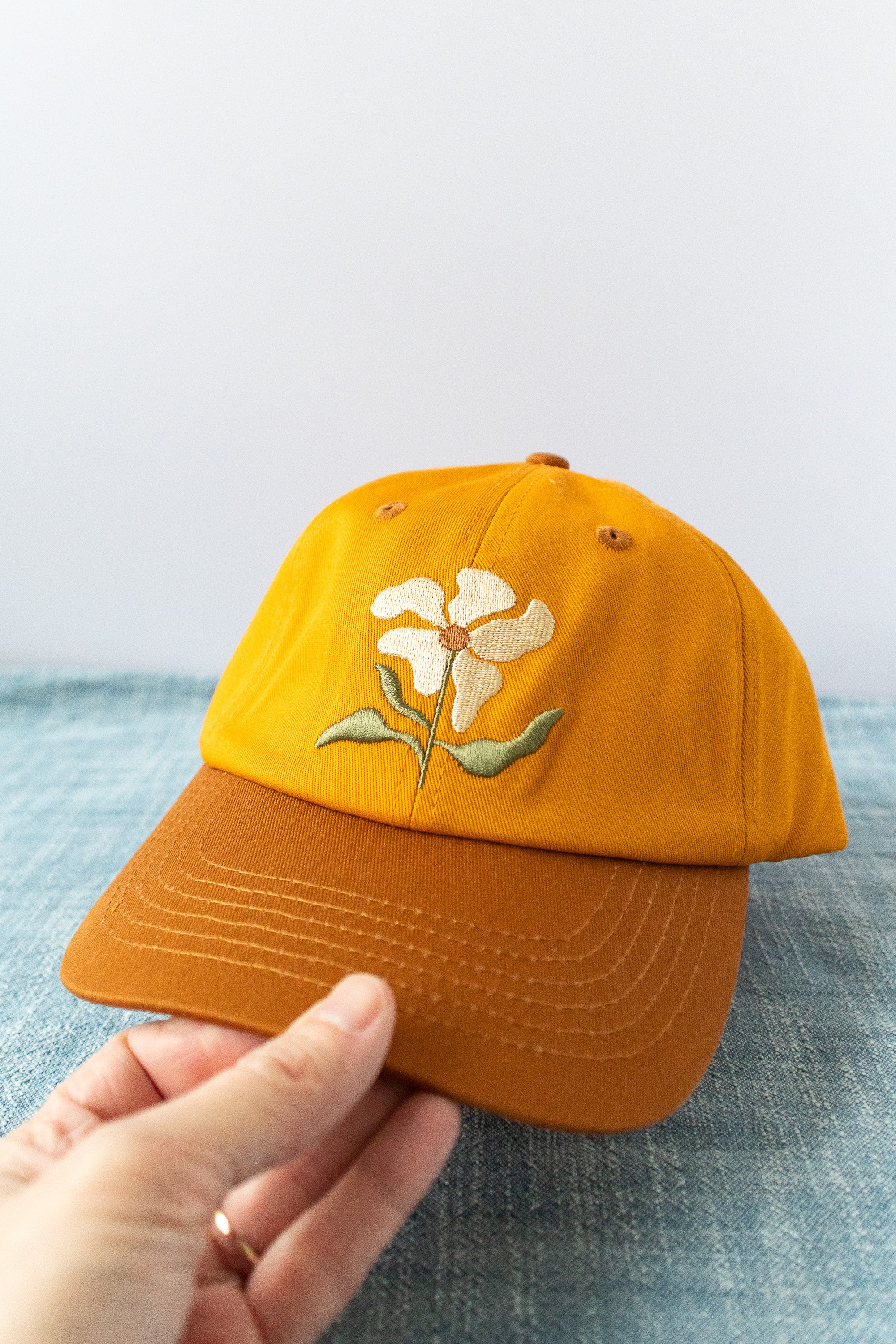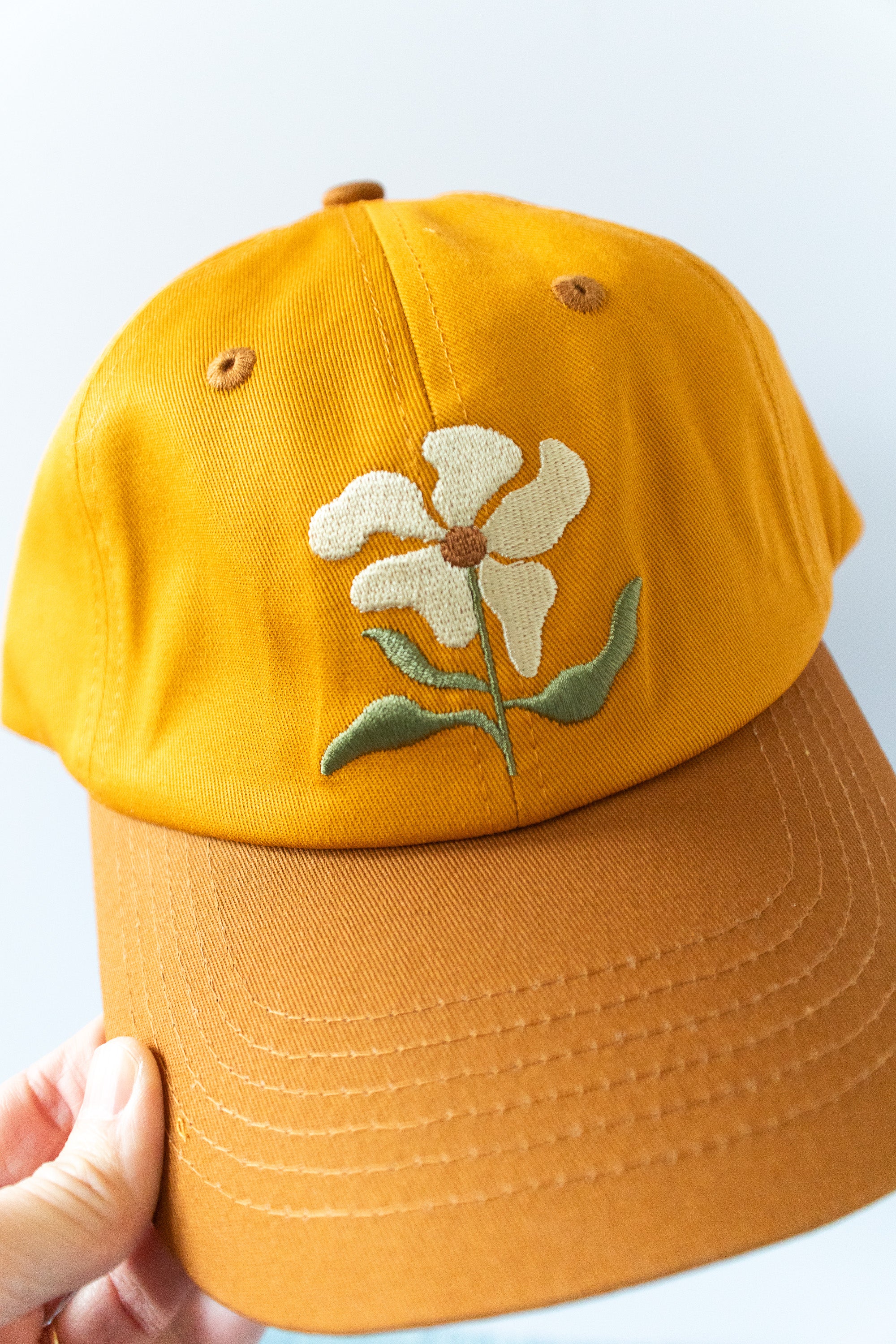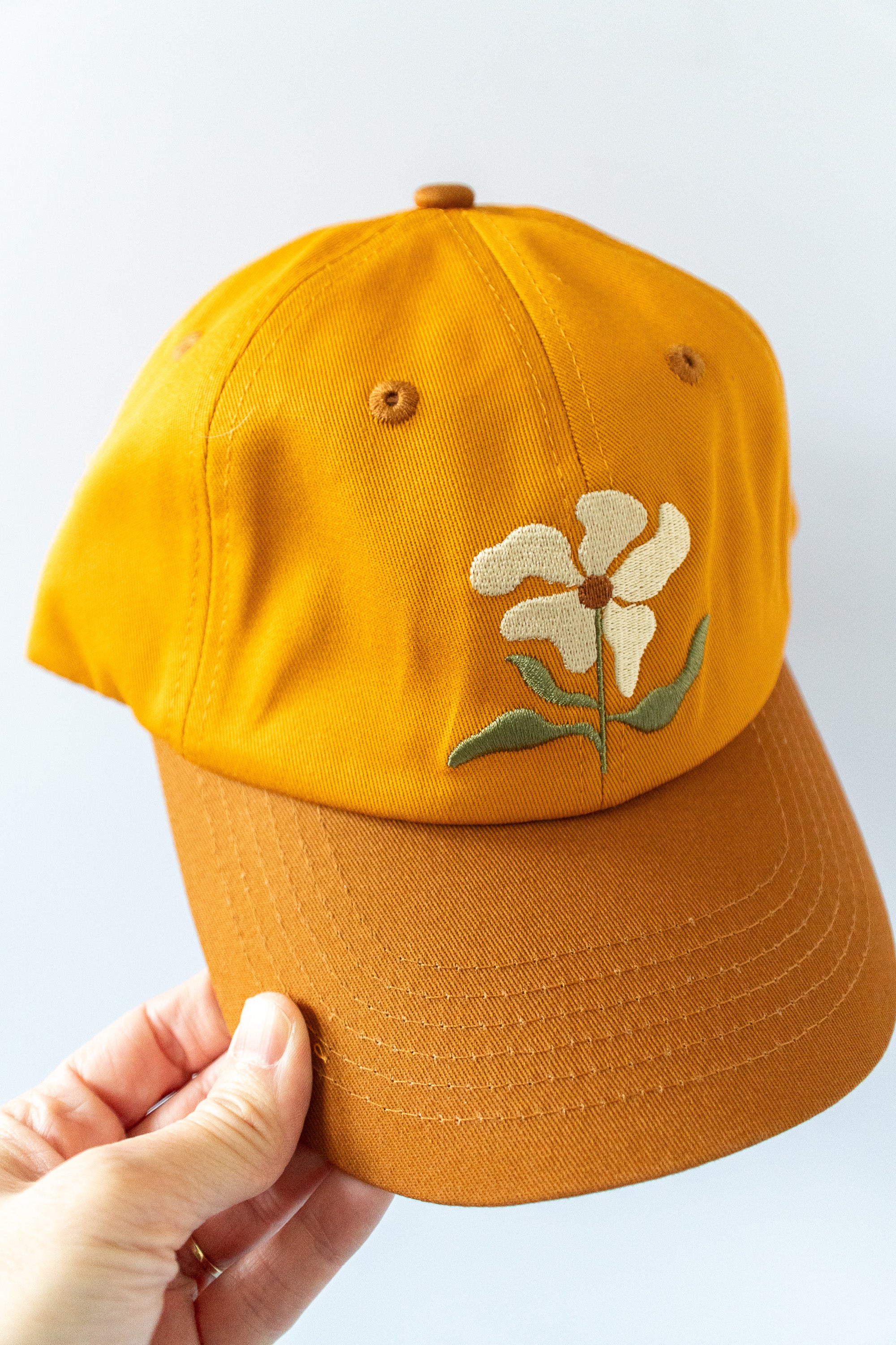 Floral Embroidered Baseball Cap – 100% Cotton, Adjustable Hat with Ponytail Slot