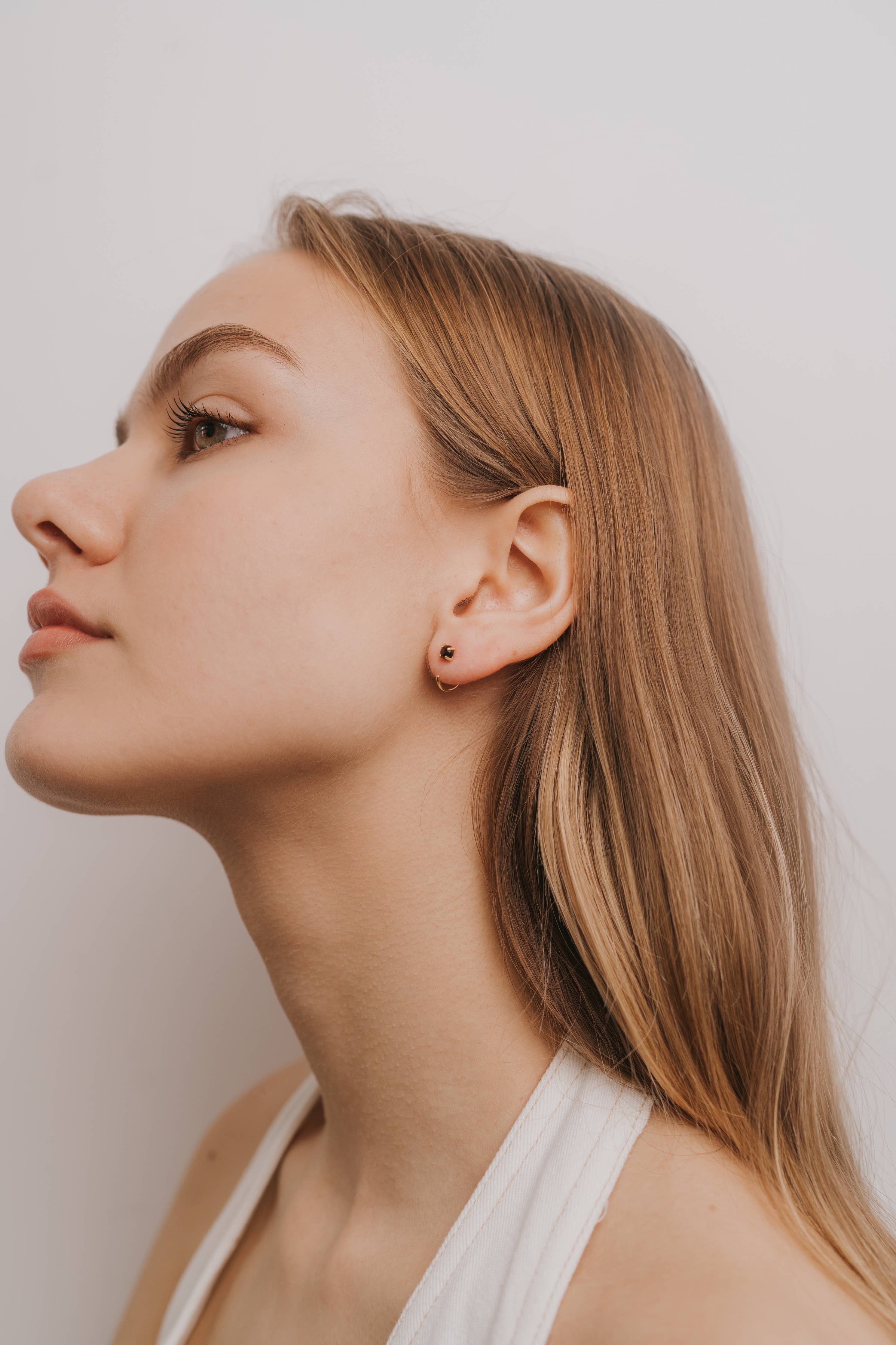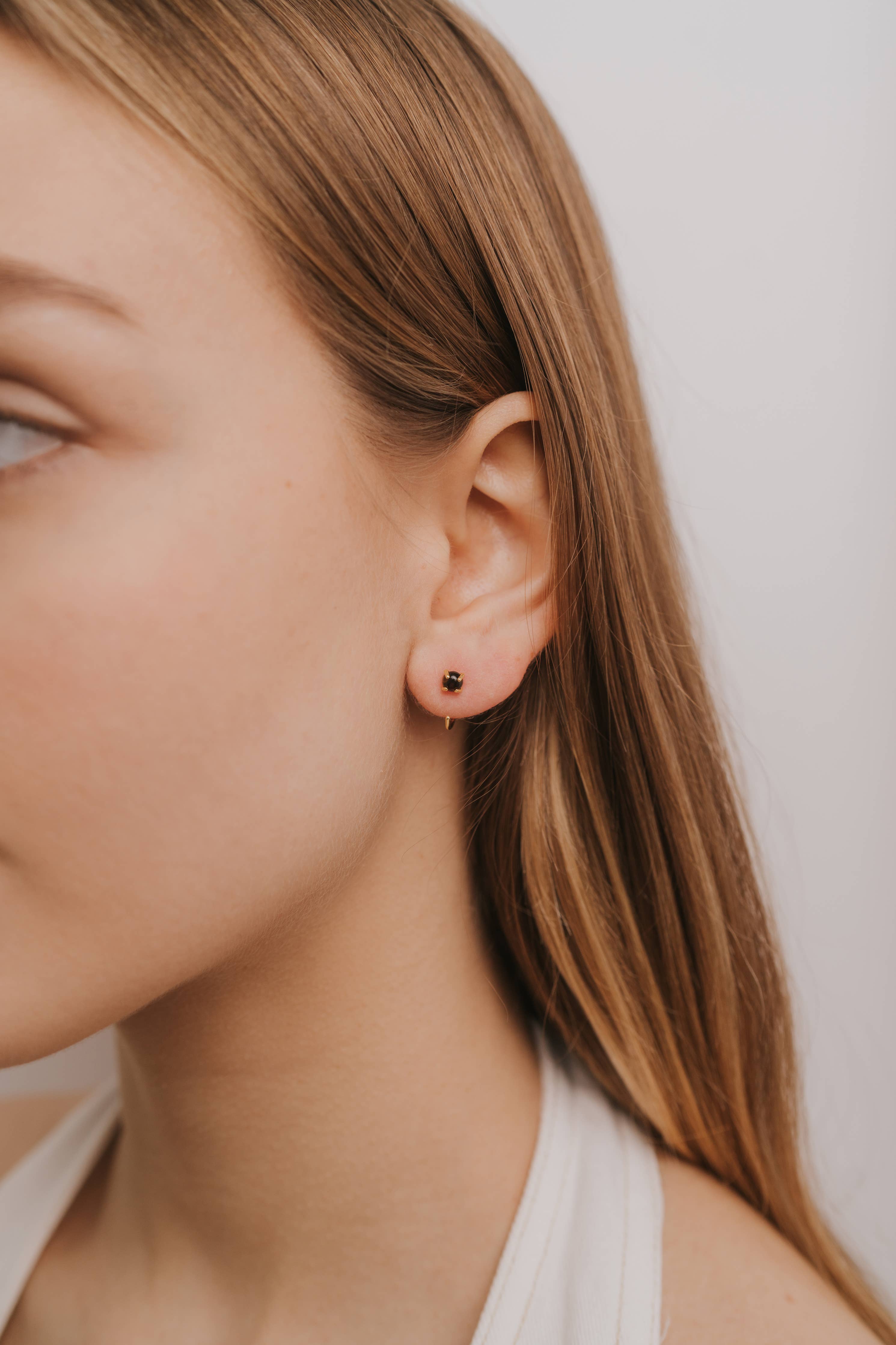 Huggies Earrings in Black Obsidian & Gold