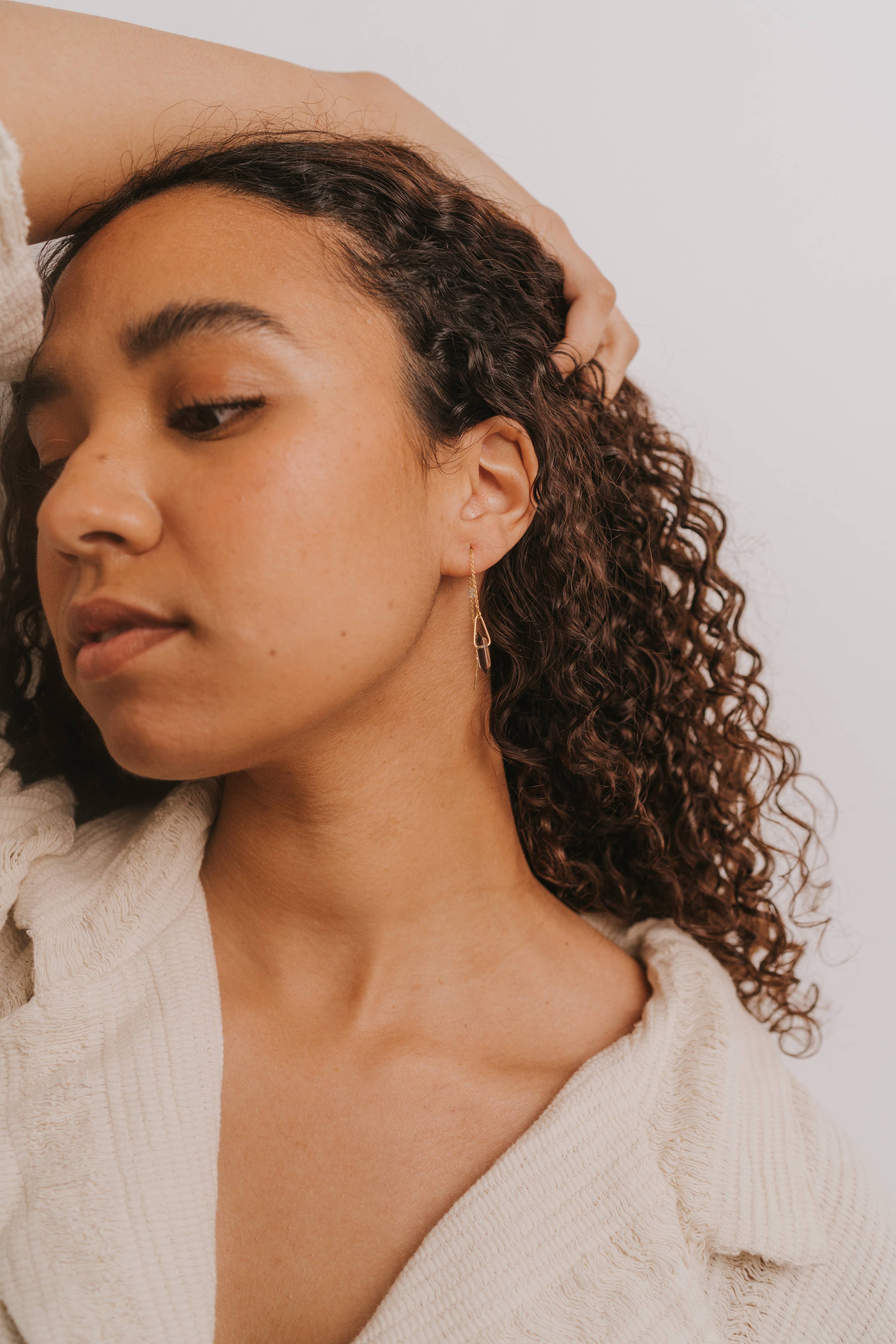 Threader Earrings, Gold & Smoky Quartz