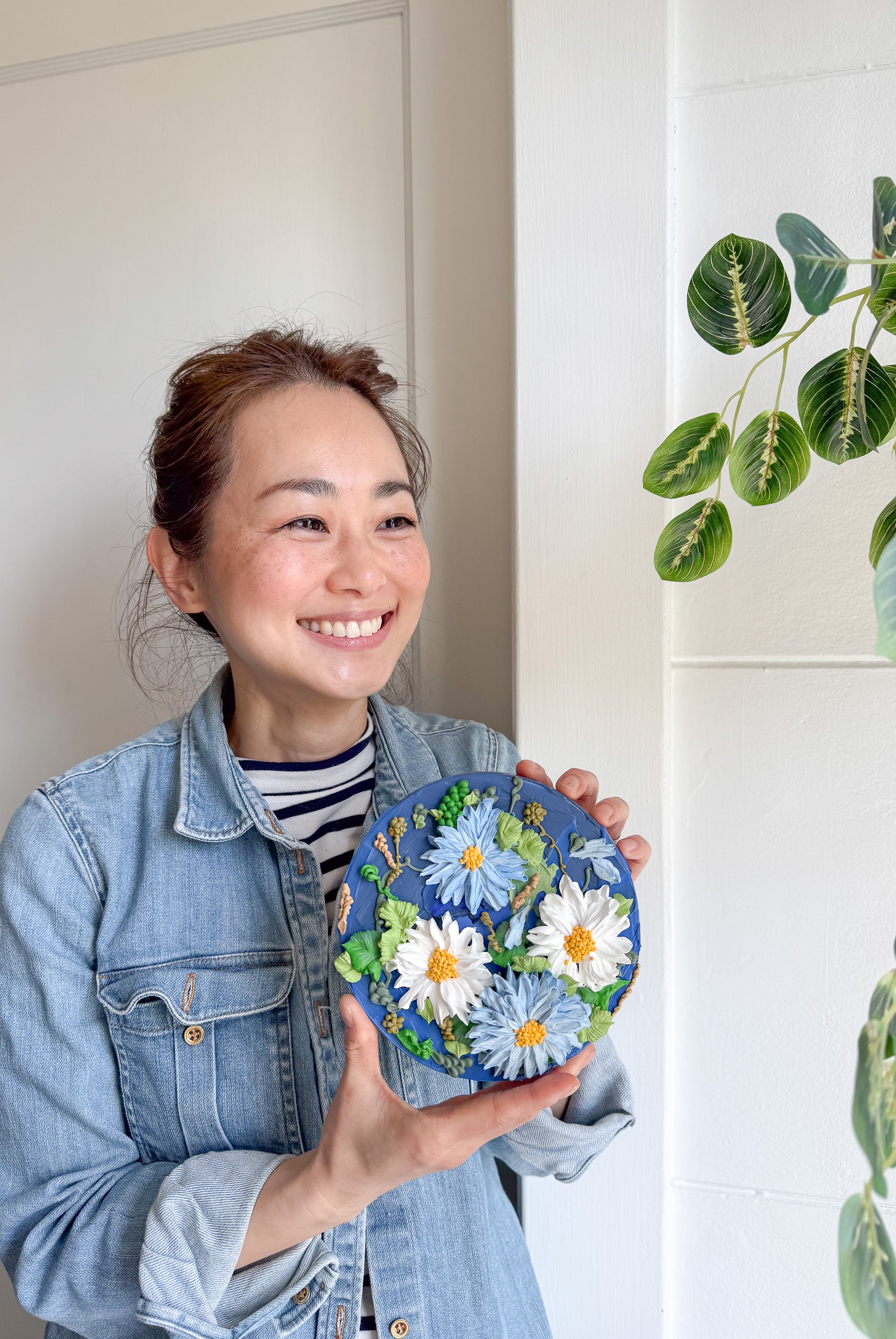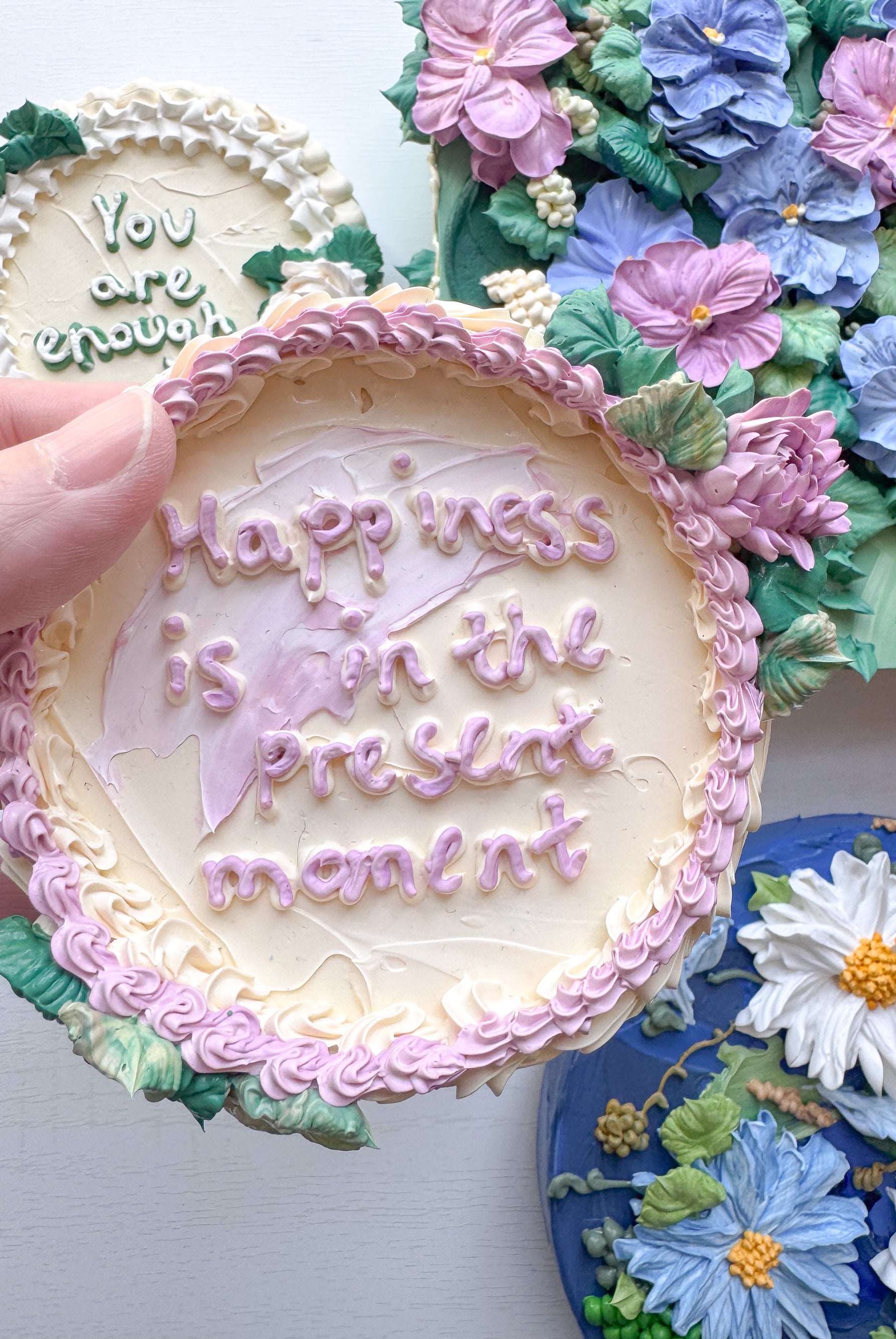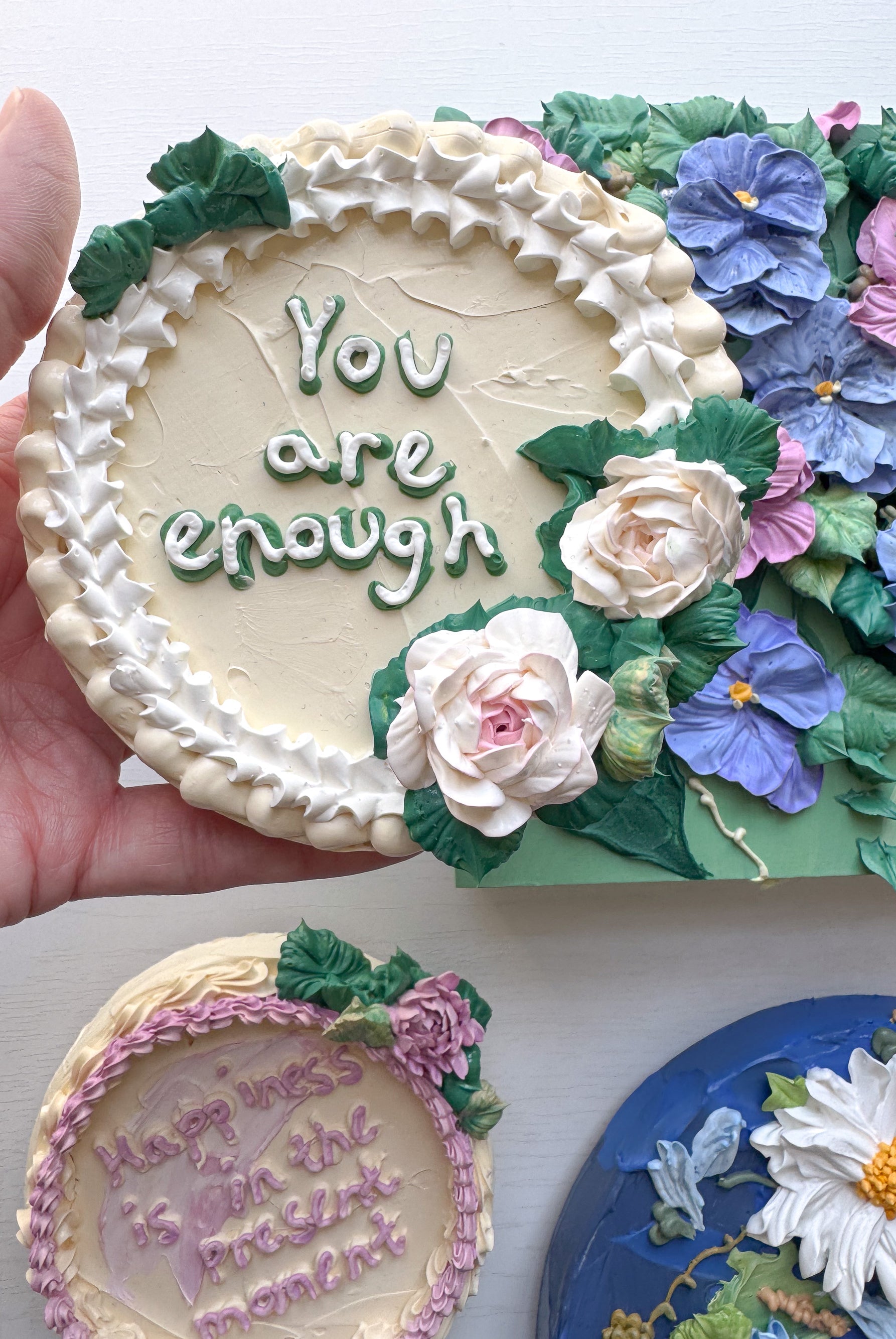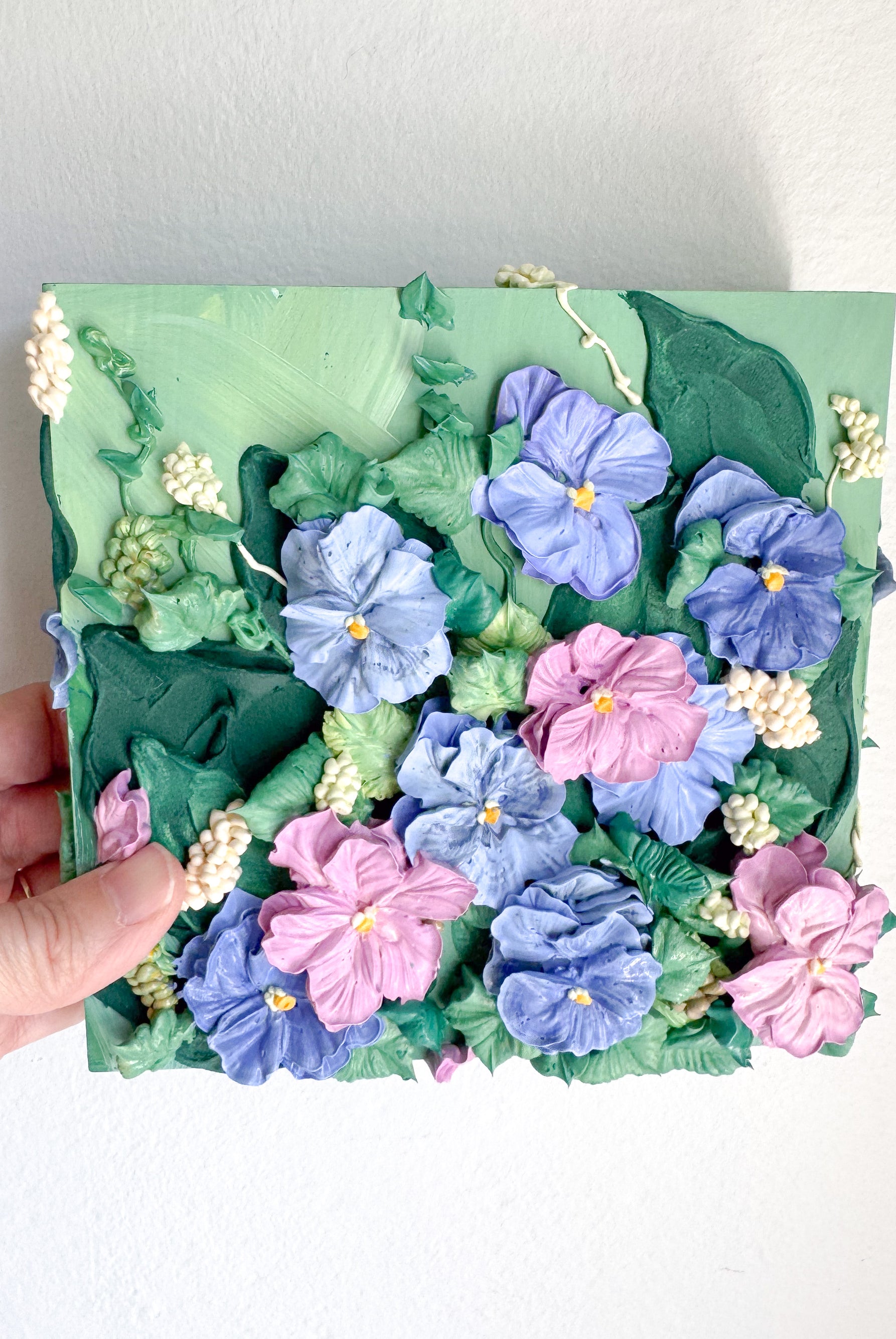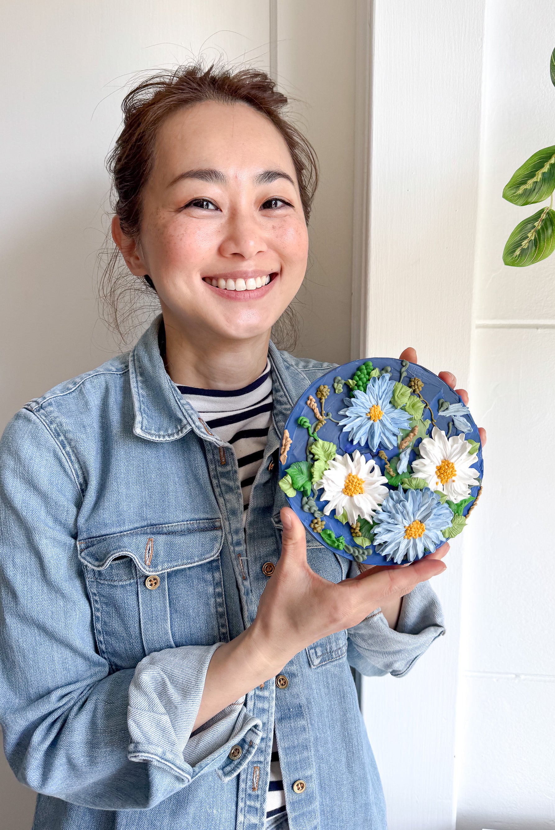 Meet local artist Ji Ahn Kang who makes beautiful three dimensional artwork featuring florals that look edible but are actually made with a paint medium. Ji Ahn actually went to fine art school in South Korea and then later became instagram famous for her cake decorating and even wrote a book about her skills. Wanting to transition to an art form that was more permanent but still had the same feel as her cake art, this art form emerged. Ji Ahn has original art pieces and art prints for sale in-person at Gather Goods Co and online. We are hosting a free meet the maker event on April 9th from 6-8pm at the shop.