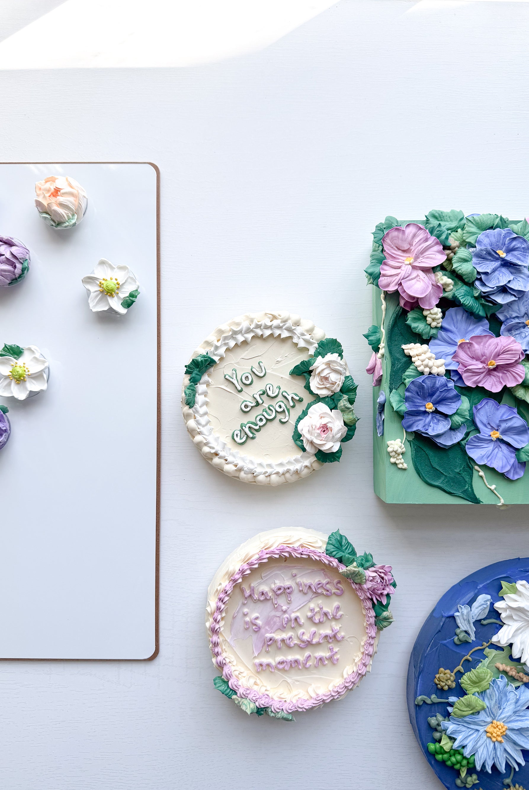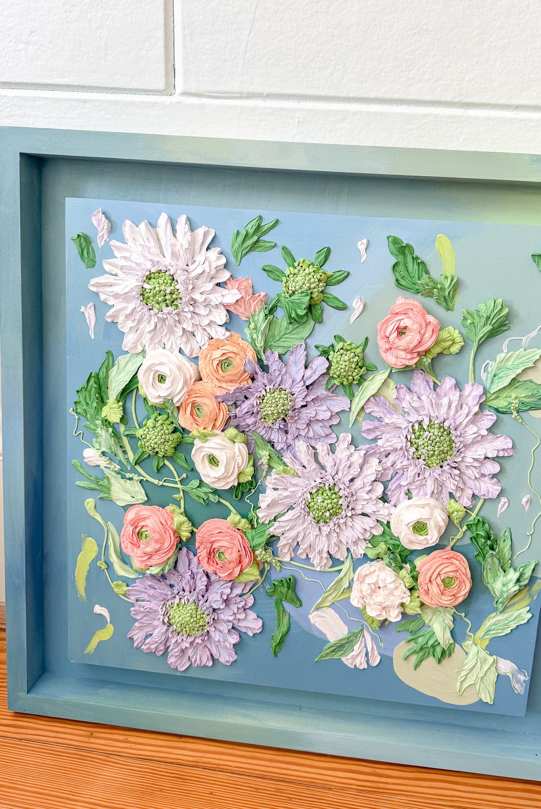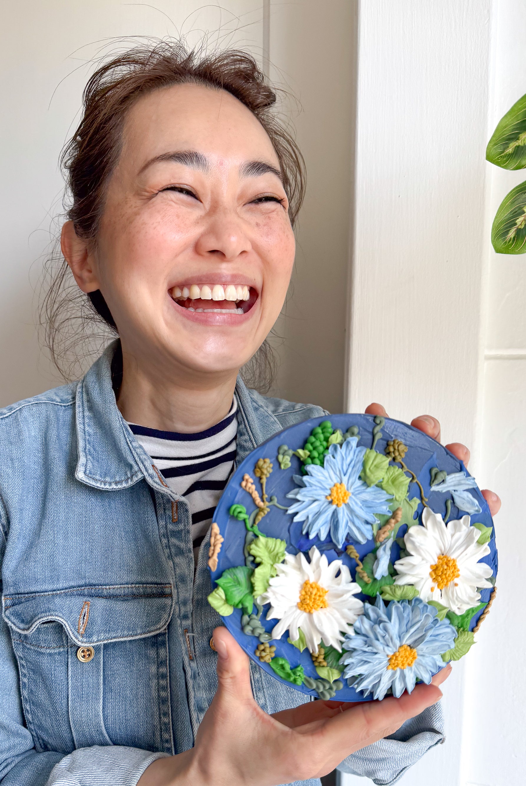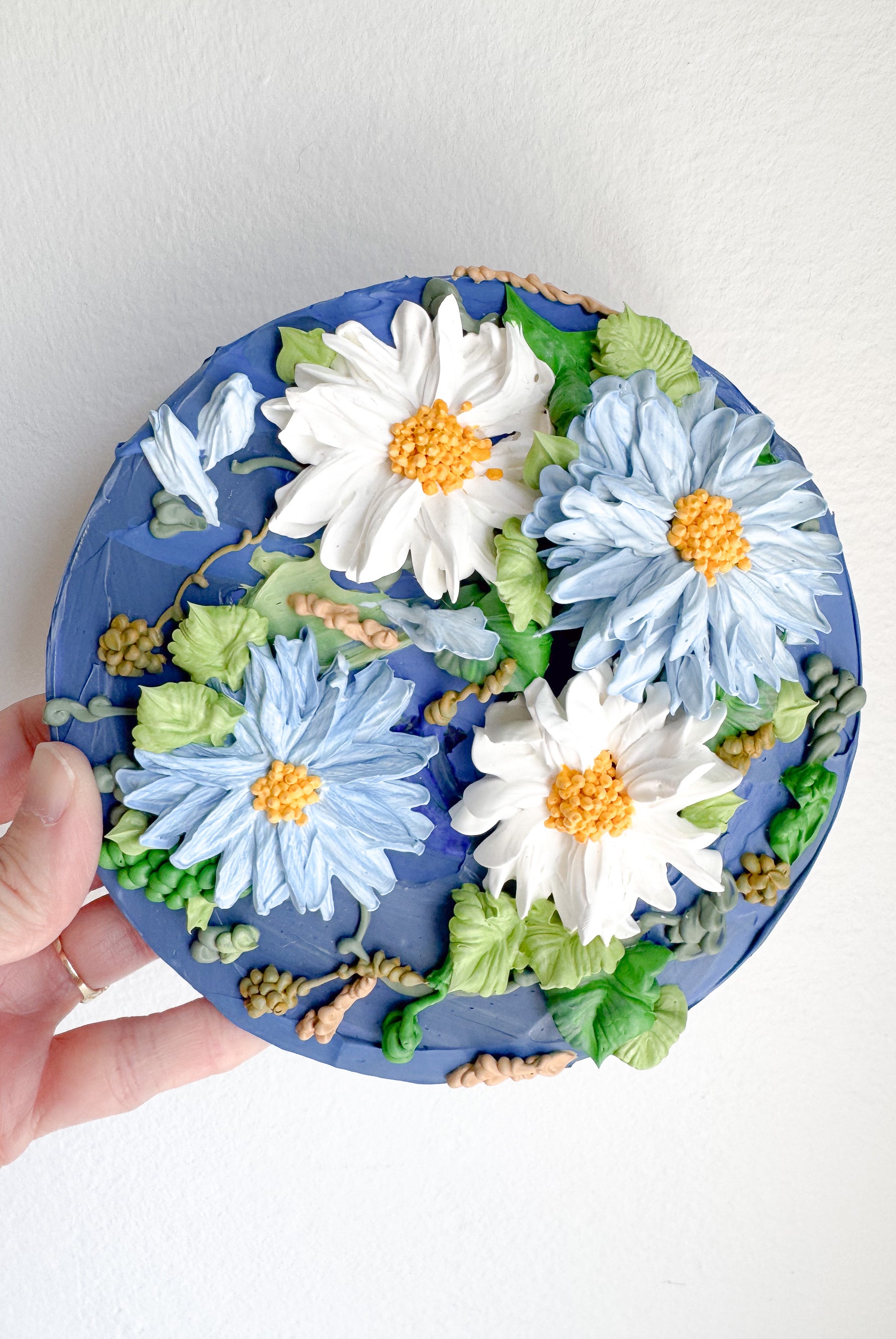 Meet local artist Ji Ahn Kang who makes beautiful three dimensional artwork featuring florals that look edible but are actually made with a paint medium. Ji Ahn actually went to fine art school in South Korea and then later became instagram famous for her cake decorating and even wrote a book about her skills. Wanting to transition to an art form that was more permanent but still had the same feel as her cake art, this art form emerged. Ji Ahn has original art pieces and art prints for sale in-person at Gather Goods Co and online. We are hosting a free meet the maker event on April 9th from 6-8pm at the shop.