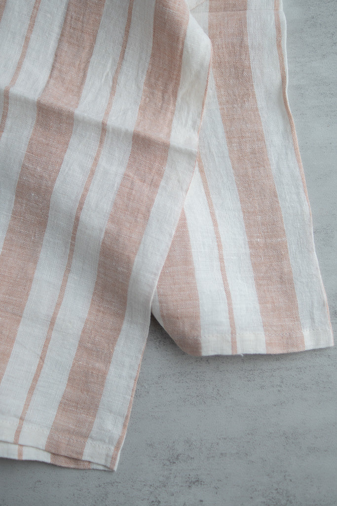 Striped Washed Linen Tea Towel, Dusty Rose Striped