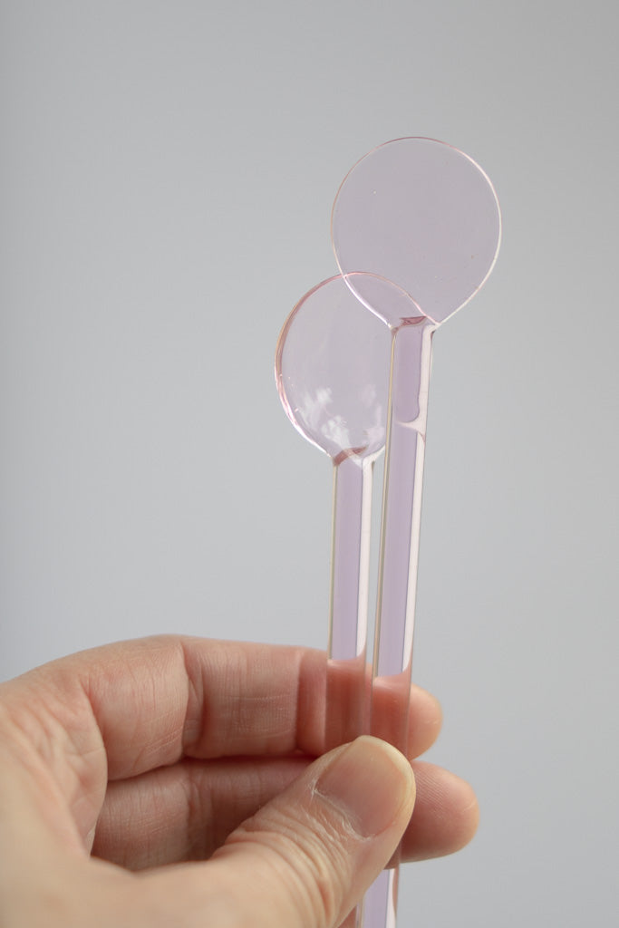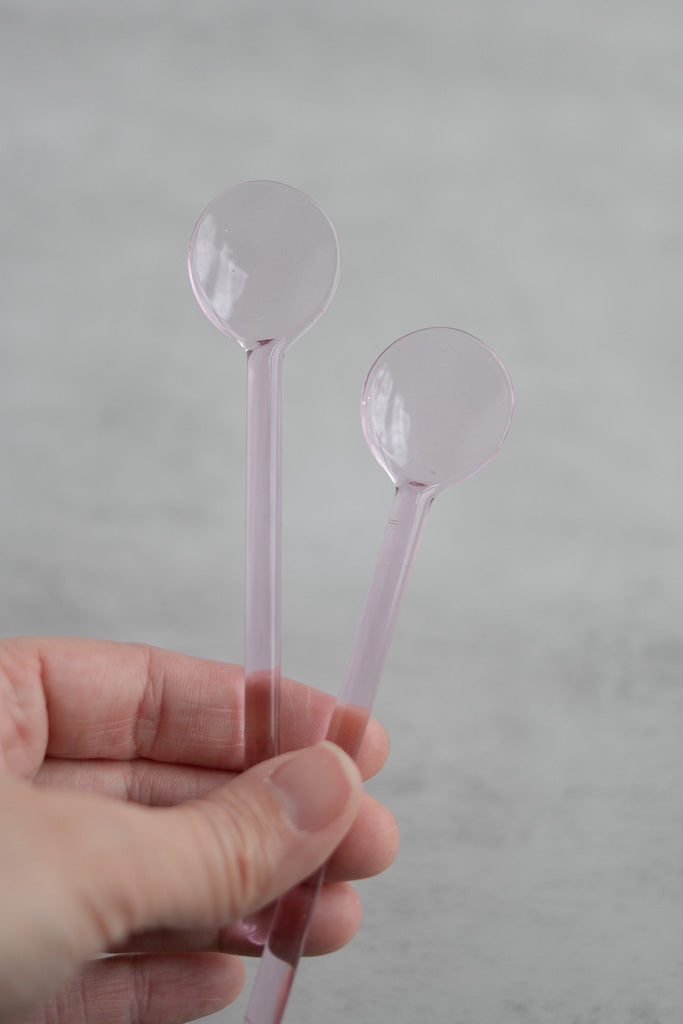 Set of 2 Rose Colored Glass Coffee Spoons