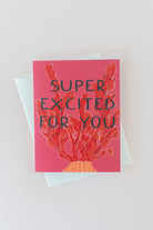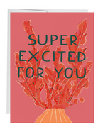 This pretty greeting card features a flower in a vase with the phrase "Super Excited For You".