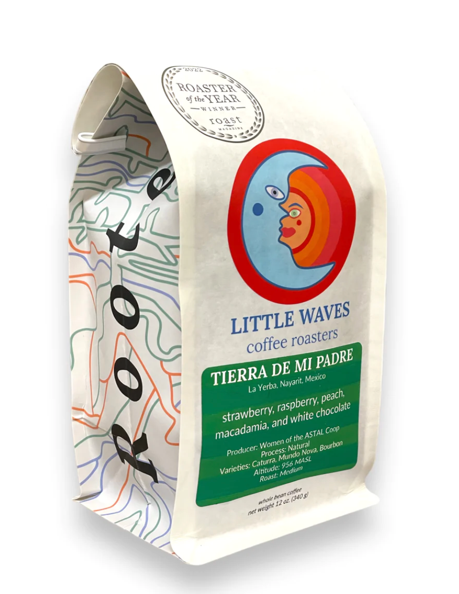 This whole bean coffee comes from Durham, NC roasters Little Waves featuring notes of chocolate, macadamia, and raspberry in a creamy, full-bodied cup. It is a medium roast.