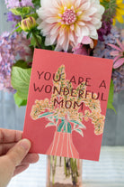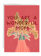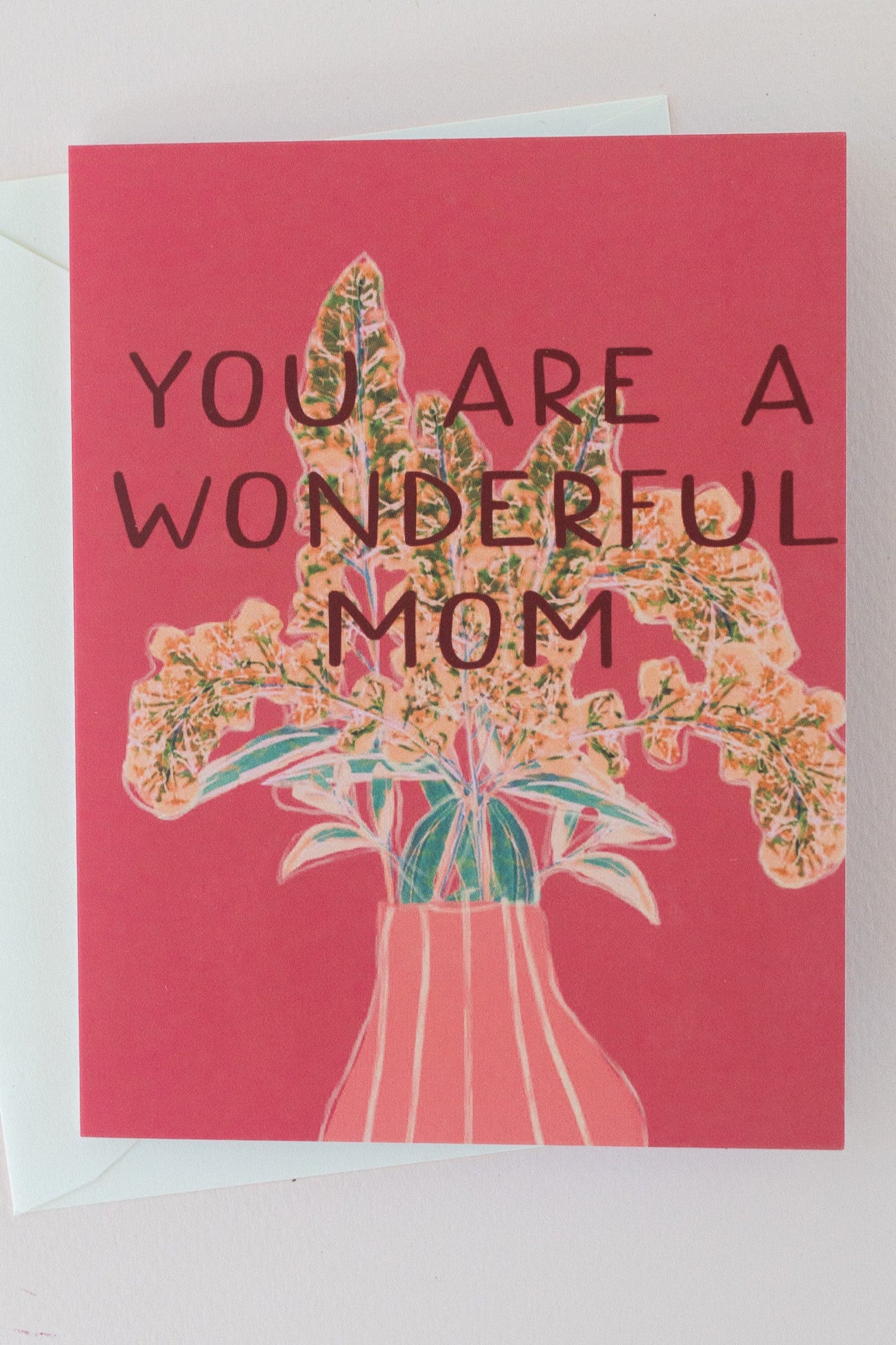 This pretty greeting card features a flower in a vase with the phrase "You Are A Wonderful Mom".