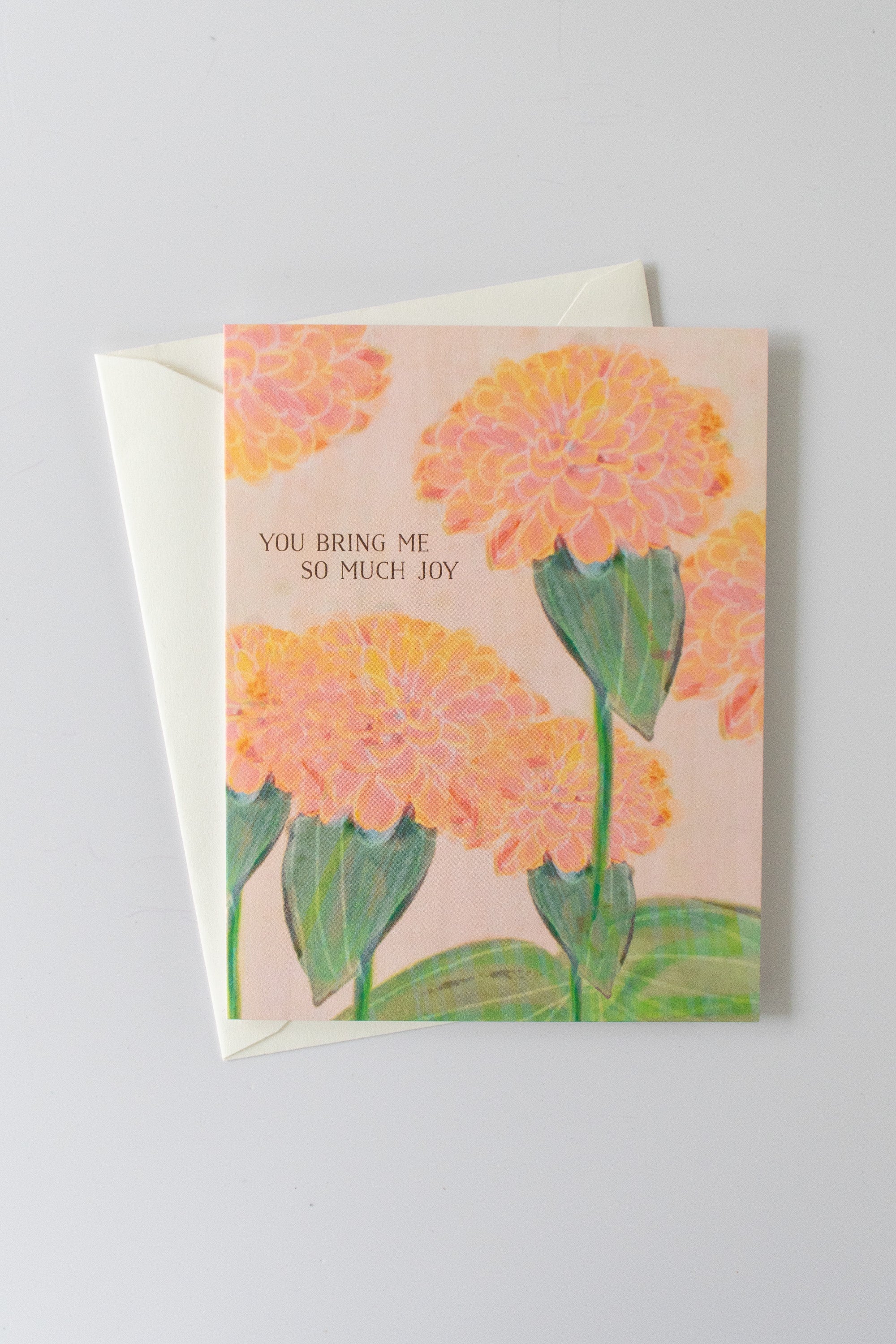 This pretty congratulations card features a soft, painterly design and says "You Bring Me So Much Joy"