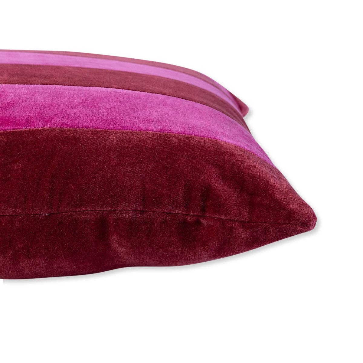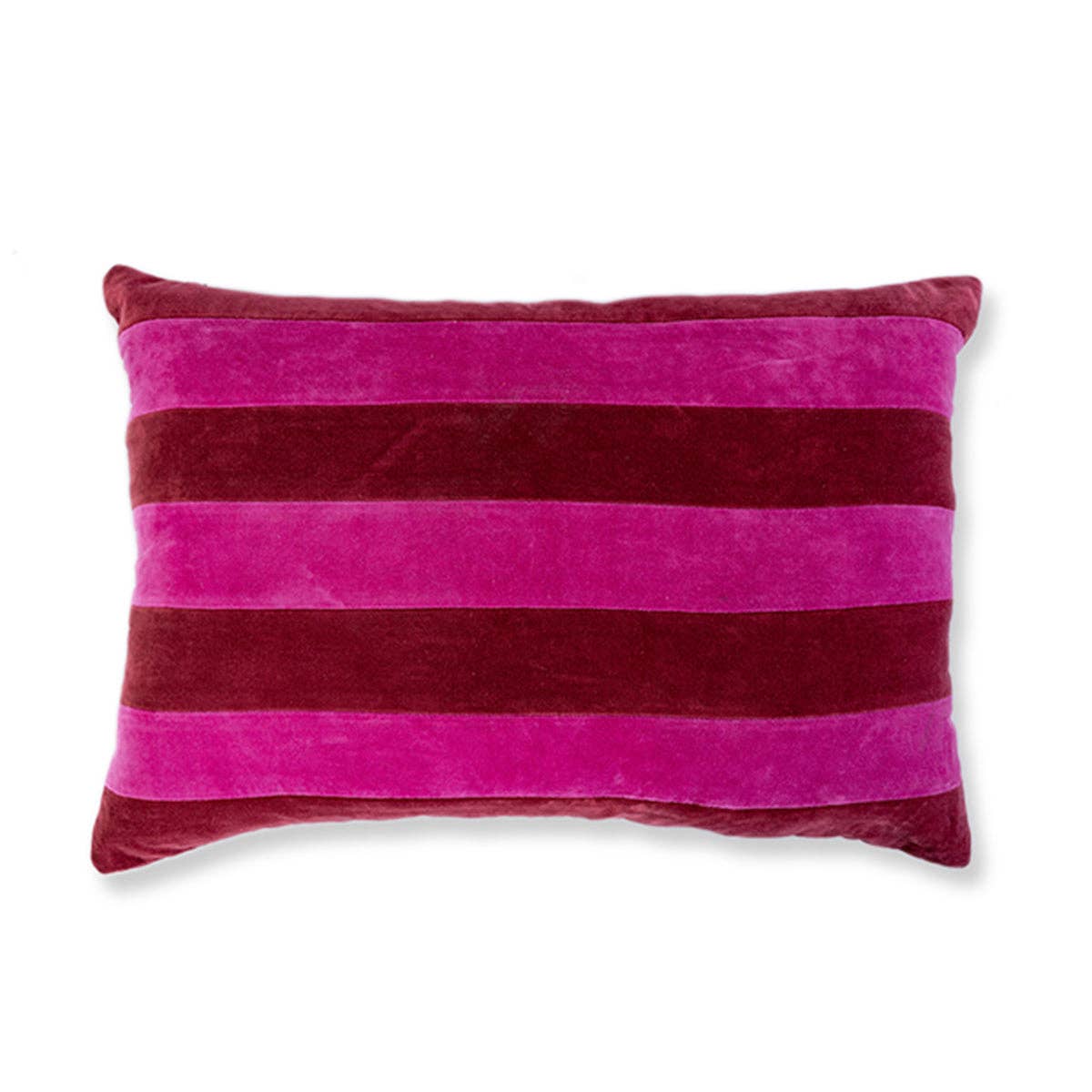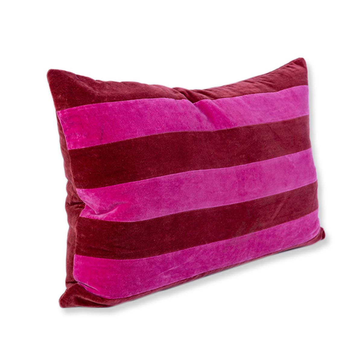Pink Striped Velvet Pillow, Burgundy and Hot Pink Lumbar
