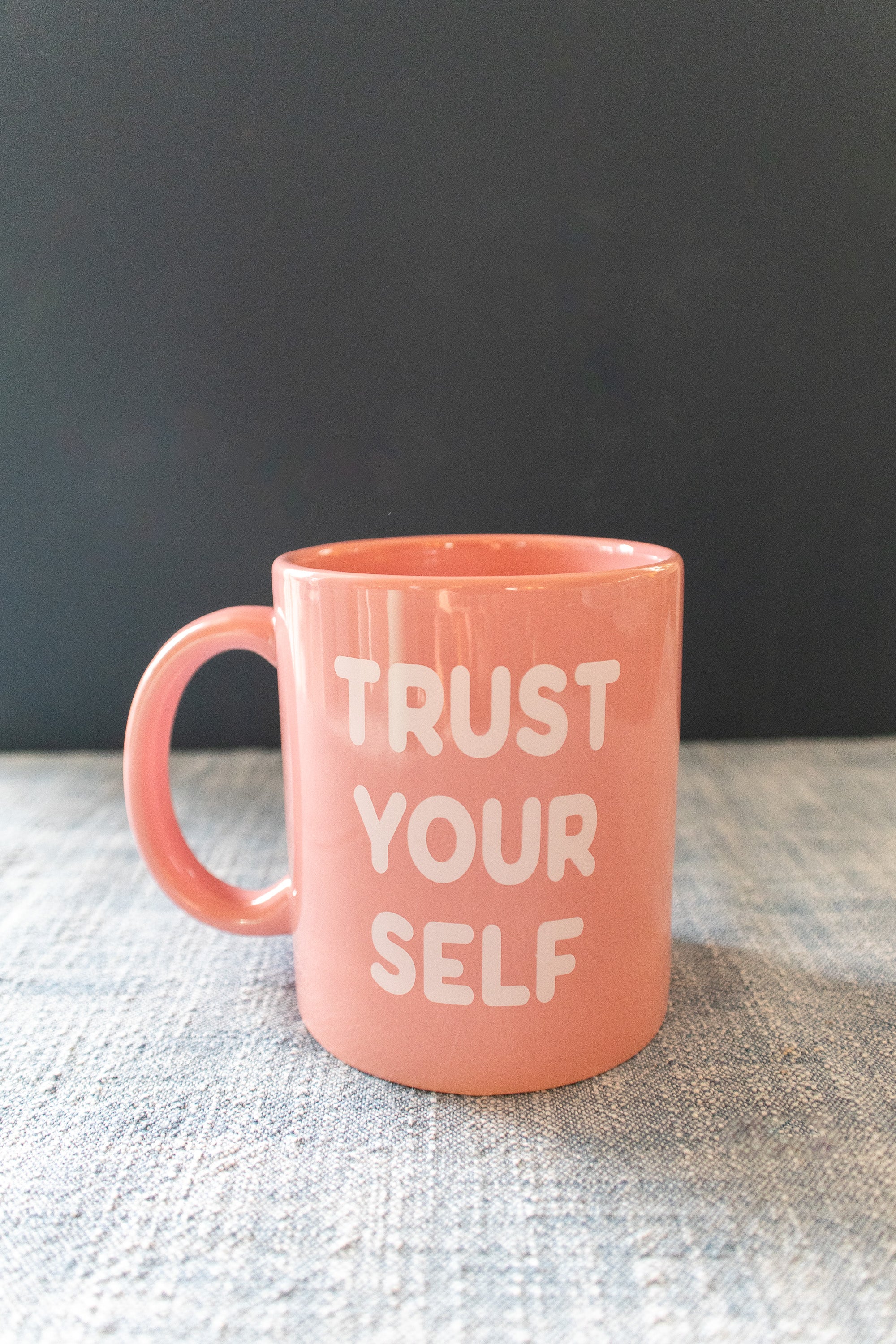 Motivational Mug, Trust Yourself Pink Ceramic Coffee Mug