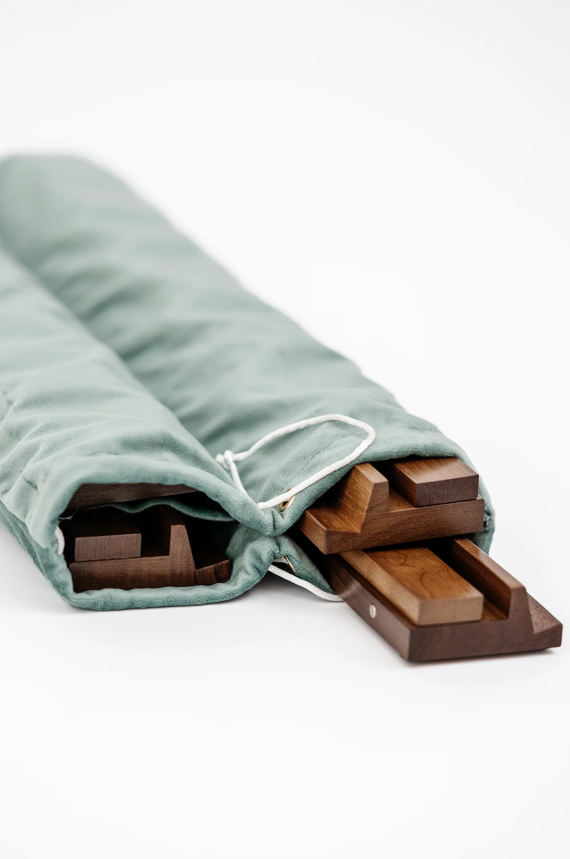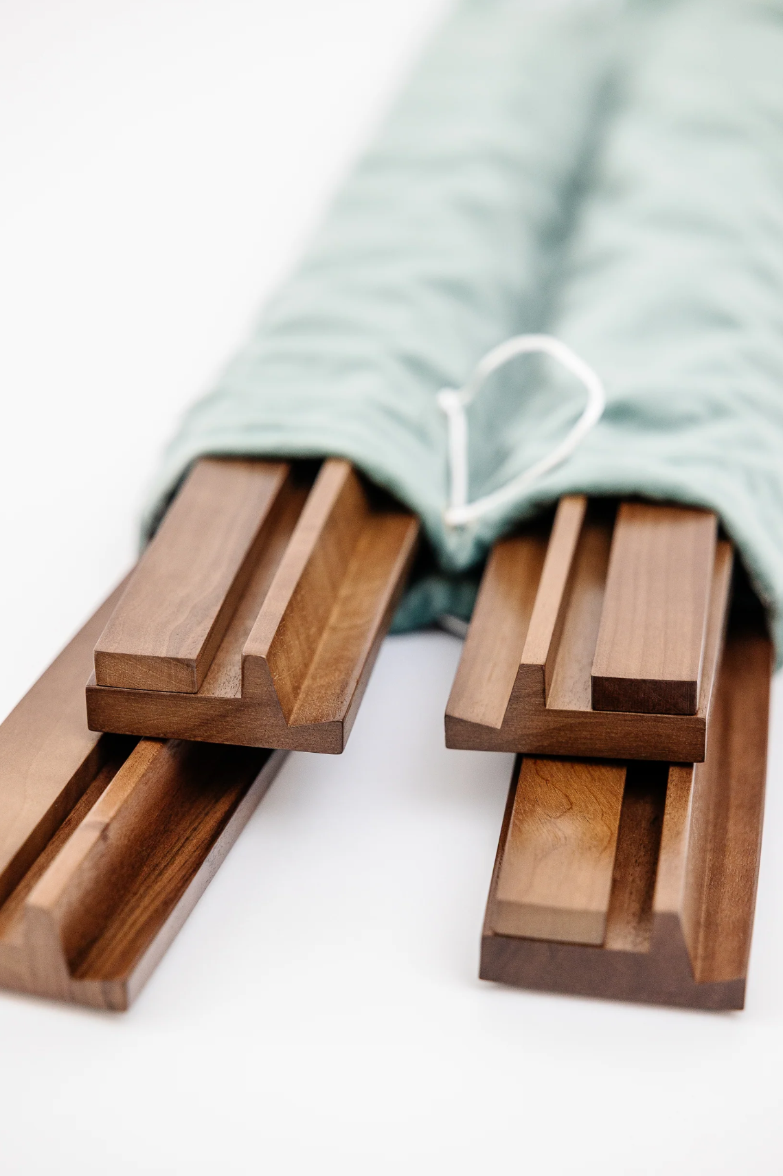 These wooden rack and pusher sets are crafted from solid wood and offered with a warm medium stain or a fun color, combining elegance and function. Each 19" rack includes a matching pusher with built-in magnets to keep it securely in place behind your wall until it’s time to push out. The set includes four racks and pushers along with a soft velvet drawstring bag with four interior pockets to protect each piece and make transport easy.