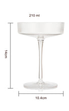 Add a touch of sophistication to your home bar with this Cocktail Coupe Goblet Glass. Made of high quality glass and equipped with a unique shaped bowl, these glasses give you more swirling space and help aromatics release more slowly for maximum enjoyment. Each glass features a wide stem and small foot, creating a beautiful silhouette and an elegant look for any table setting. Whether you'd rather imbibe or just enjoy the sight of fresh squeezed juices floating in the glass, the Coupe Goblet Glasses set is sure to impress. These elegant cocktail coupe goblet glasses are made from durable, solid borosilicate glass and hold 8 ounces. With a canted bowl and flared bottom, these stemless glasses allow the mixing and swirling of liquors and juices in drinks, offering a wide opening for aromas to be expelled. Perfect for fine dining or entertaining in the comfort of your own home. Listing is for one glass only.