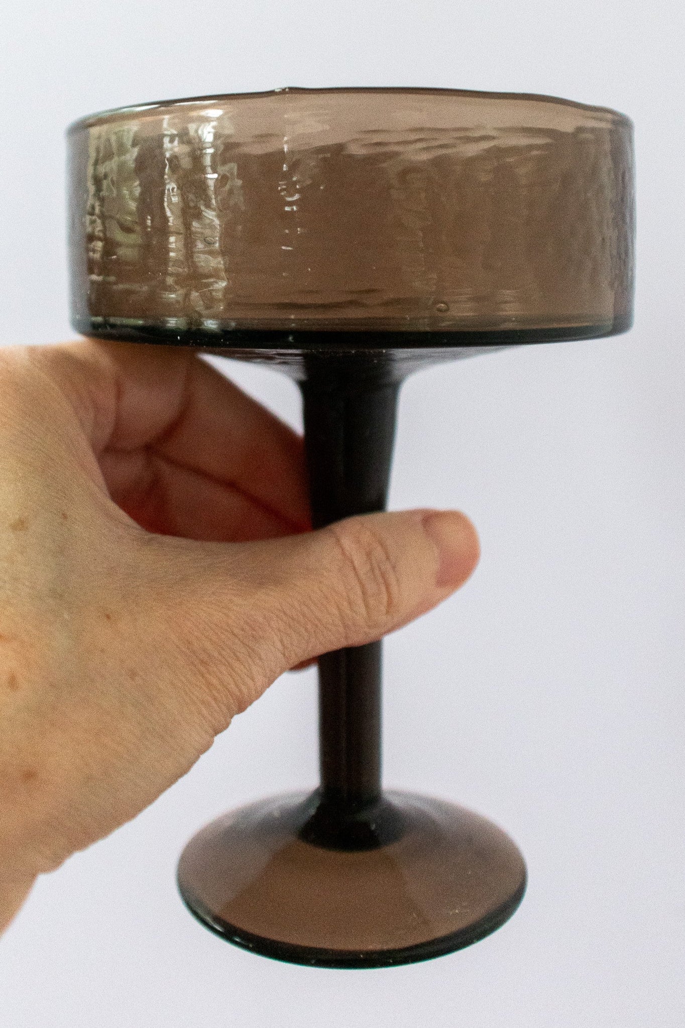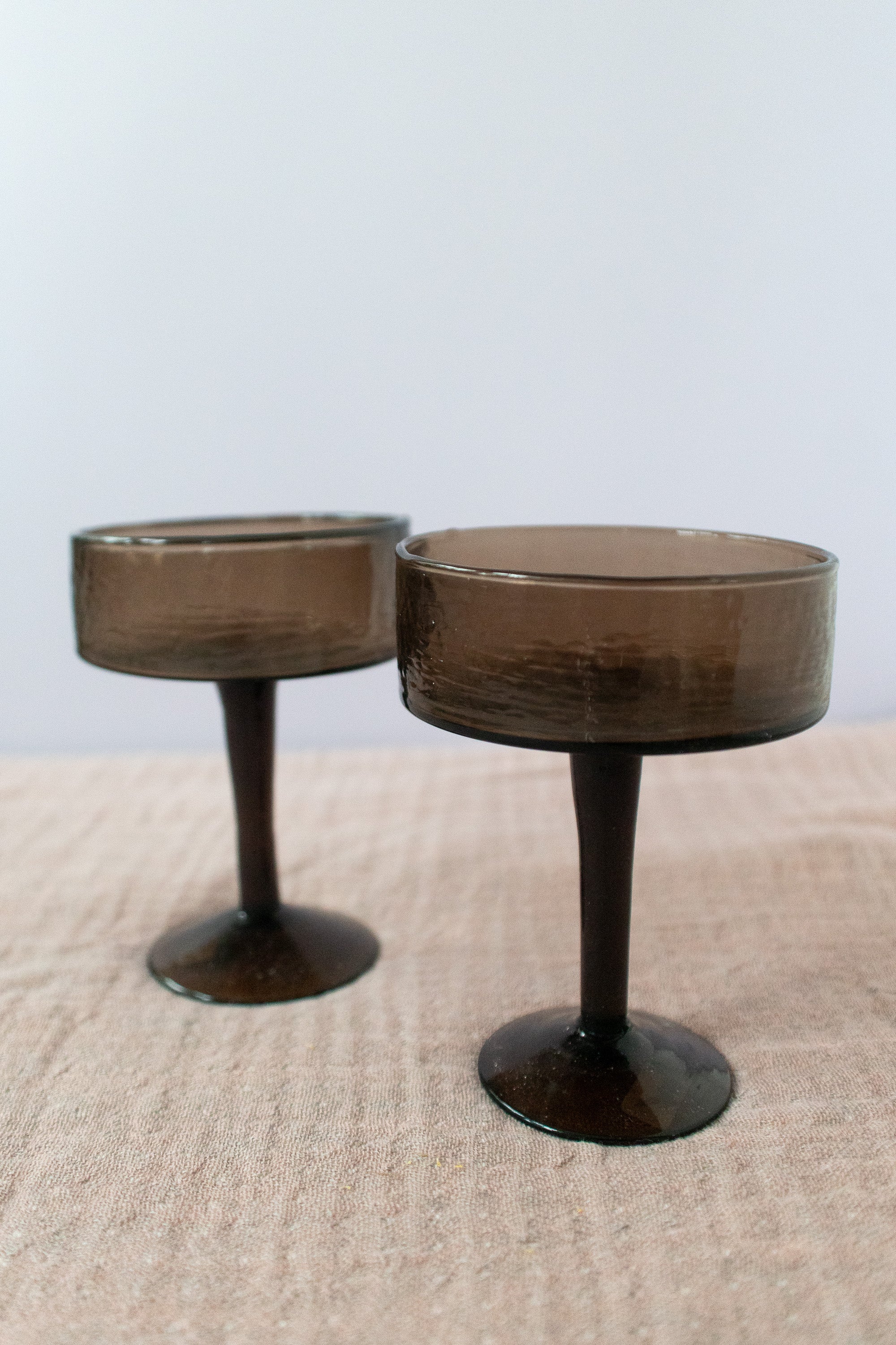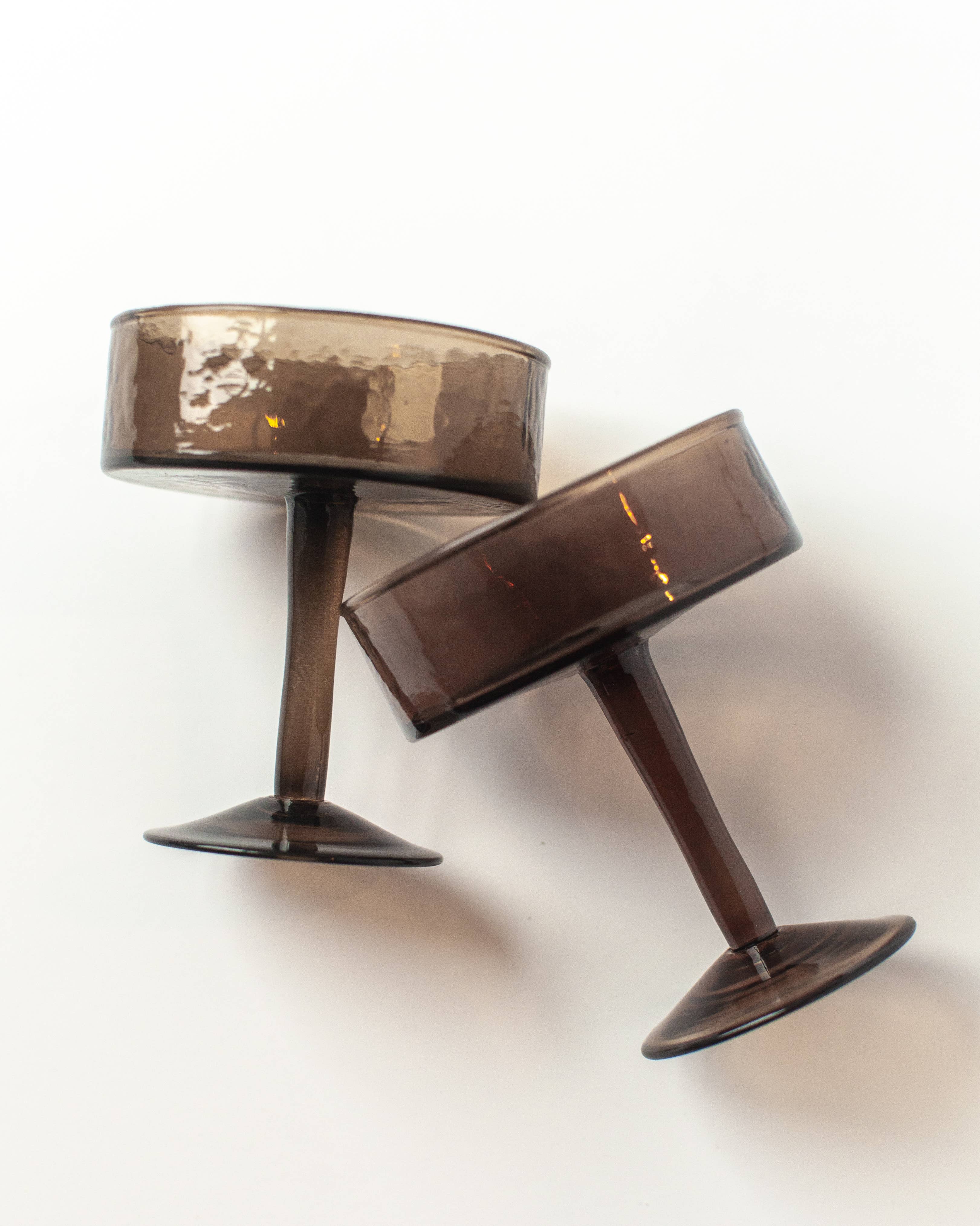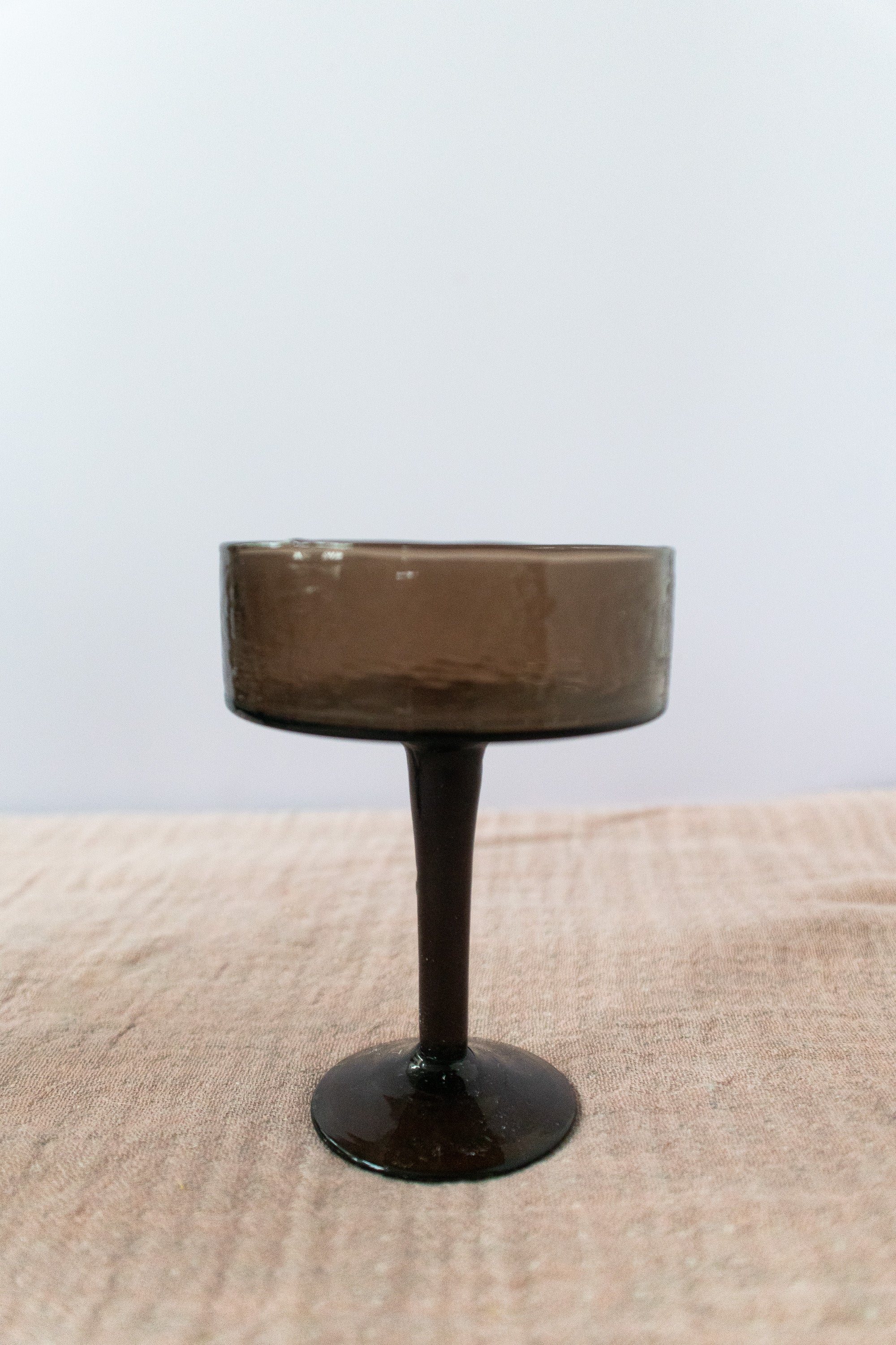 Handblown Hammered Coupe Cocktail Glass in Smokey Brown