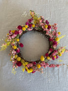 Dried Flower Wreath, 10" Grapevine Wreath, Pink & Yellow Flowers
