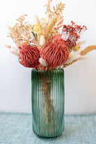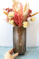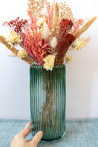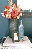 Large Dried Flower Arrangement in A Colorful Glass Vase