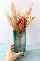 Medium Dried Flower Arrangement in A Colorful Glass Vase
