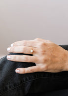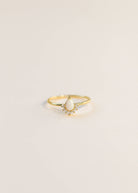 Our White Opal ring, adorned with petite teardrop CZ's, inspires creativity and happiness. Opal is known as the "joy" stone, intensifying happiness and encouraging freedom of emotions. Tarnish Free - Long lasting protective coating safeguarding your jewelry from sweat, water, and more. 5x more gold that standard 18k gold plating over brass Hypoallergenic – Lead Free Synthetic Opal stone White Cubic Zirconia Band width approx. 1mm Setting approx. 8mm Size 6