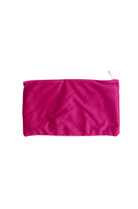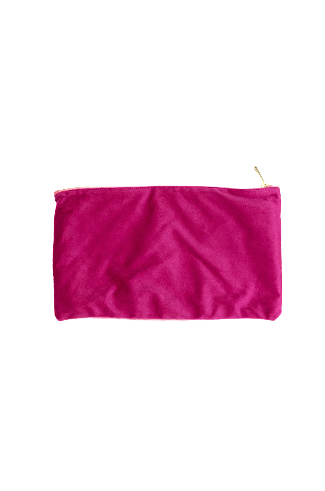 Hot pink and pink. All bags have a hot pink velvet interior.