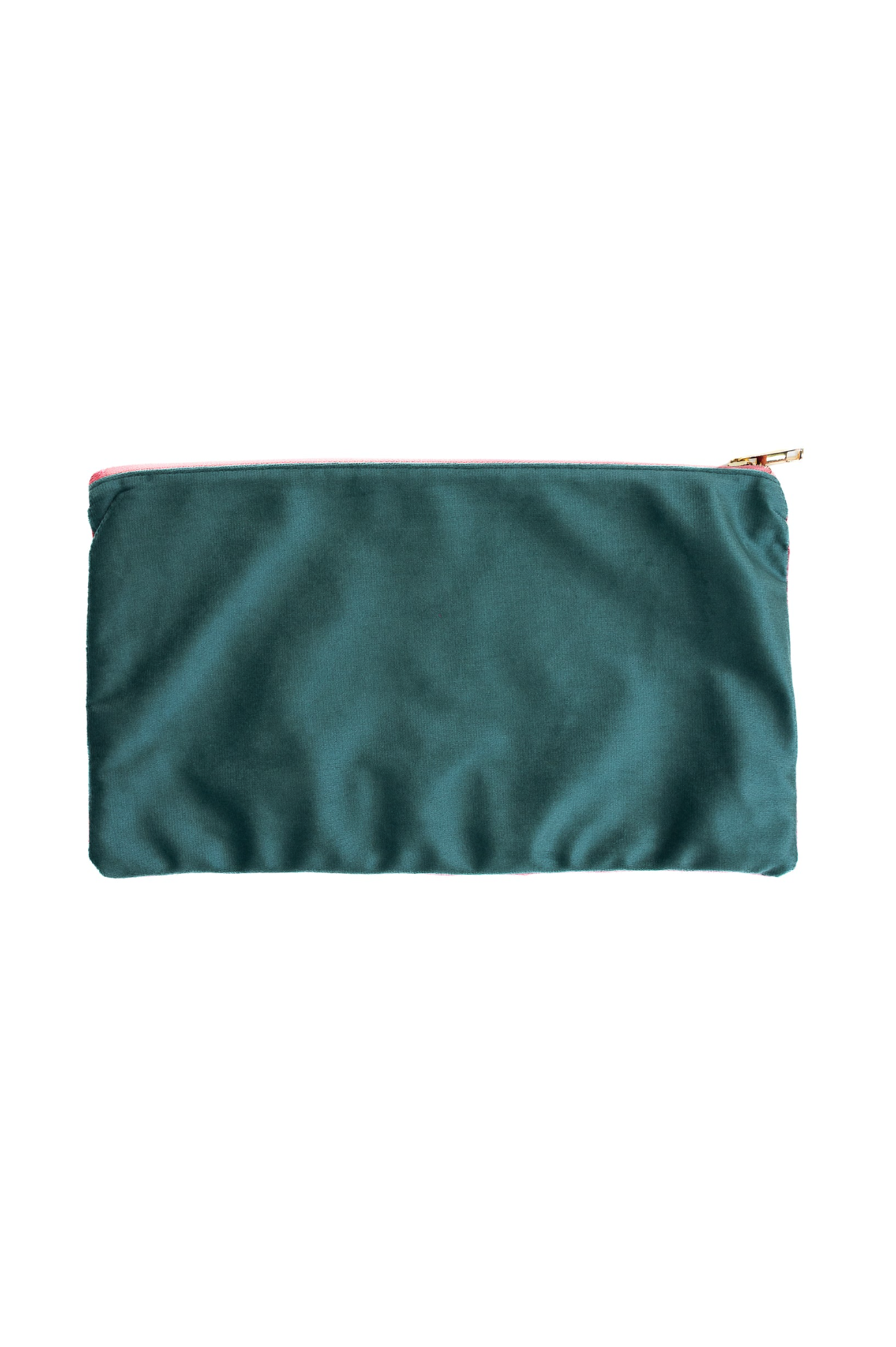 Teal and pink. All bags have a hot pink velvet interior.
