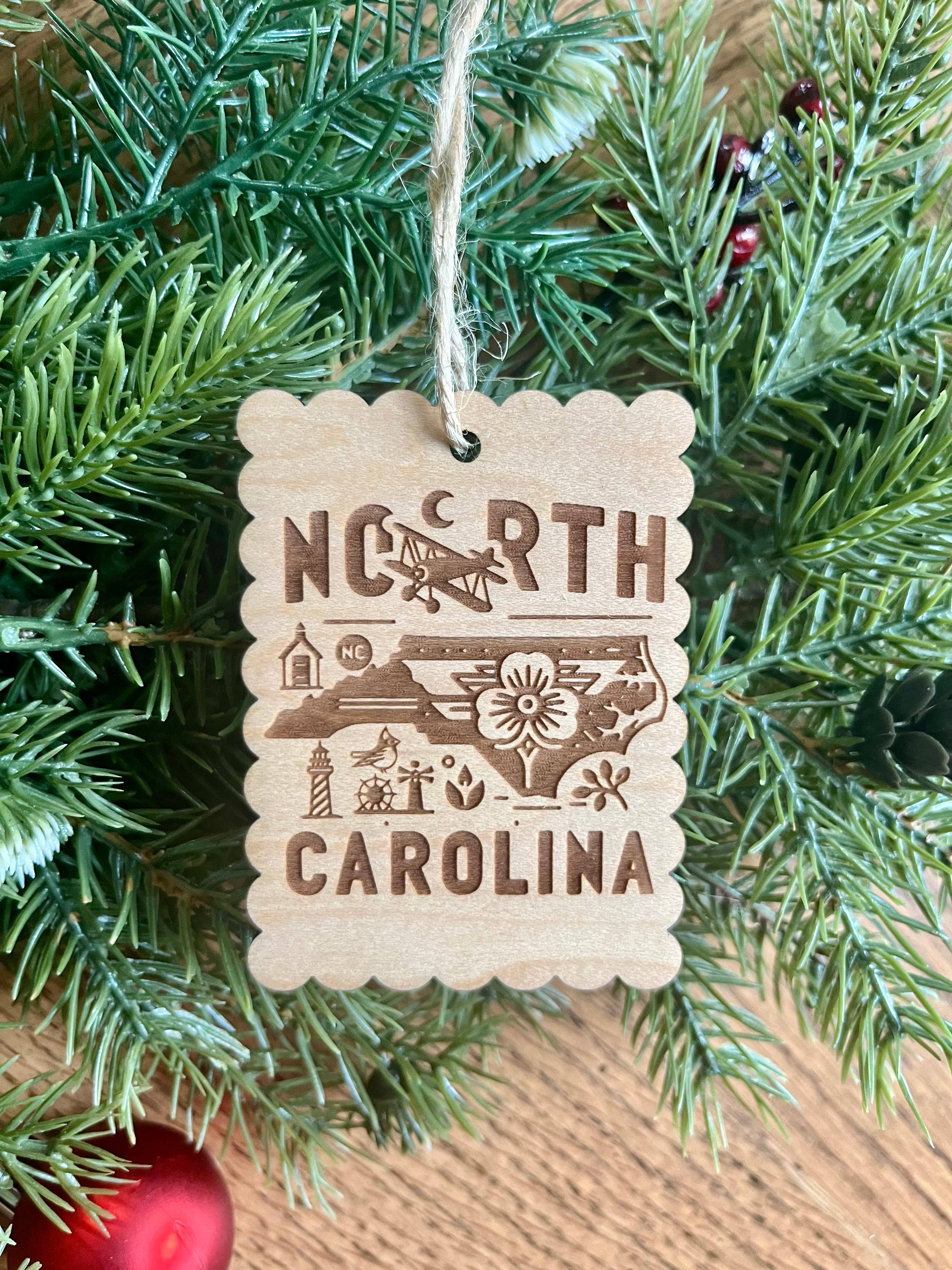 North Carolina Christmas Raleigh Wooden Christmas Ornament