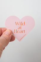 This heart shaped sticker is a year round valentine that says wild at heart on a pink background. Reminiscent of a conversation heart, this fun sticker is great for water bottles, laptops and more. It is waterproof, weatherproof and dishwasher proof.
