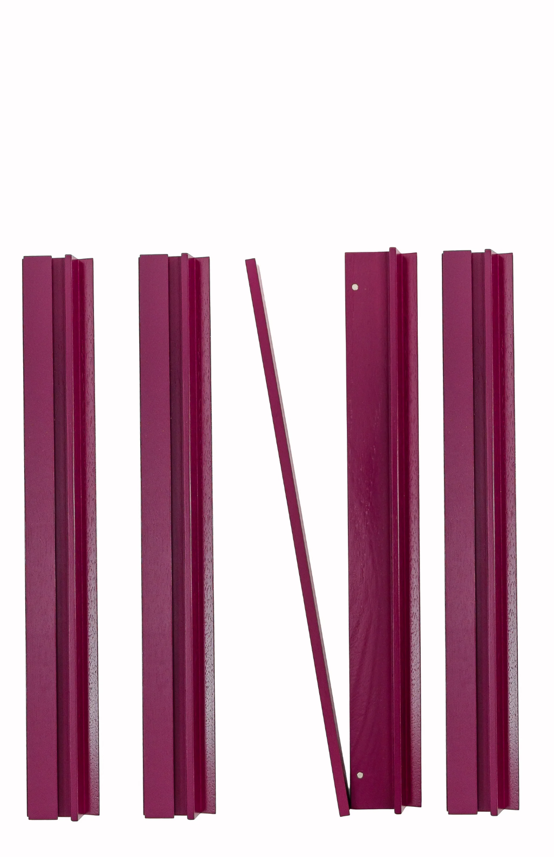These wooden rack and pusher sets are crafted from solid wood and offered with a warm medium stain or a fun color, combining elegance and function. Each 19" rack includes a matching pusher with built-in magnets to keep it securely in place behind your wall until it’s time to push out. The set includes four racks and pushers along with a soft velvet drawstring bag with four interior pockets to protect each piece and make transport easy.