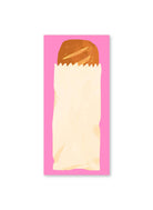 A carb-lover’s dream for everyday lists. The Bread List Pad features a simple, graphic baguette tucked in a paper bag on a bright pink background, adding a cheerful pop to kitchens, offices, and anywhere reminders tend to pile up. With an attached magnet, it stays right where you need it, so grocery lists and quick notes don’t disappear. Perfect for grocery runs, meal planning, pantry restocks, and daily to-dos. Retailers love it as a playful, giftable paper good that merchandises easily near kitchen items, notebooks, or at checkout for an easy add-on. Professionally printed full color Size: 4" x 8½" 65 tear-off sheets Attached magnet Padded with cardboard back Printed locally in the USA