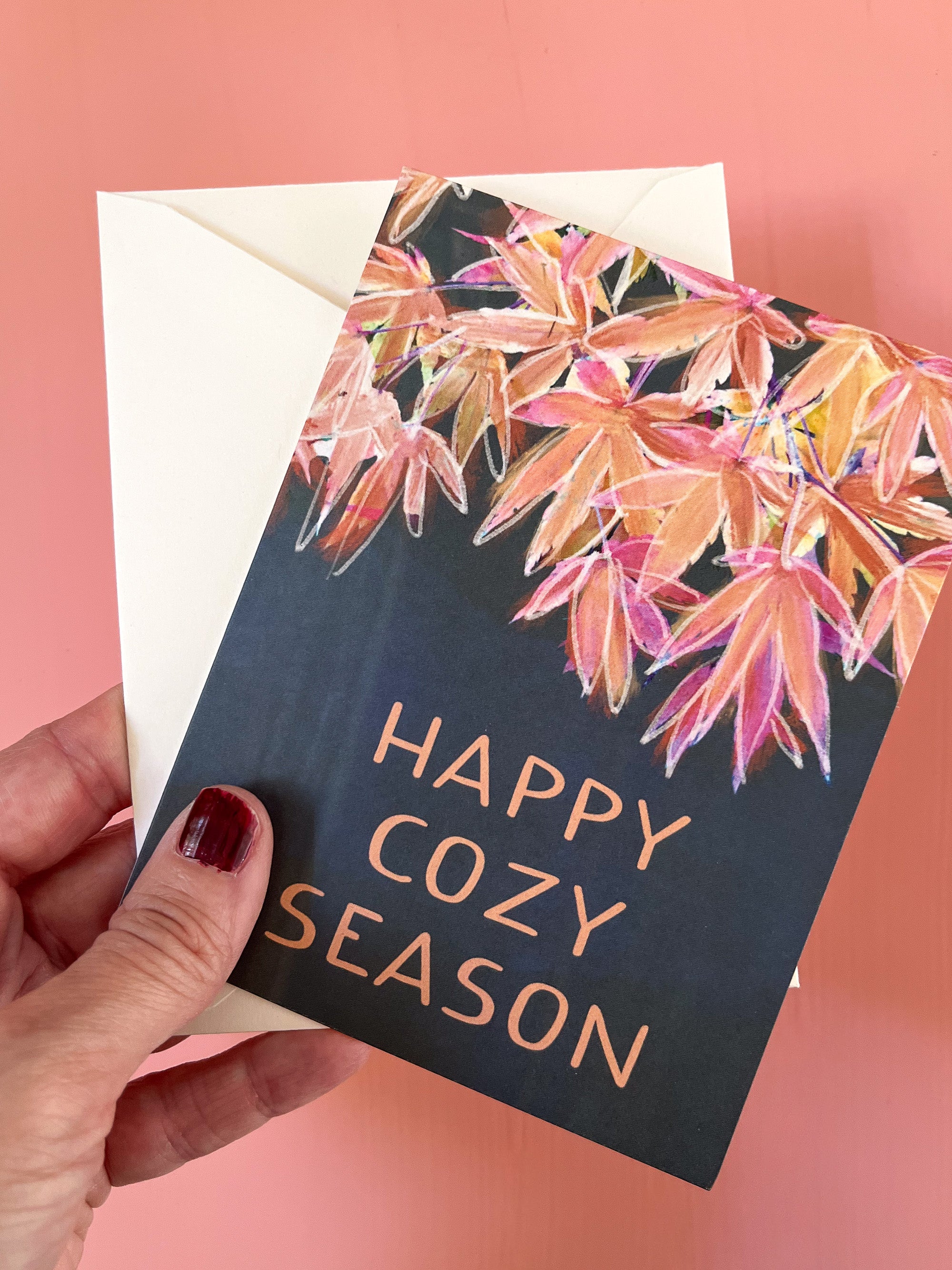 Happy Cozy Season, Fall Card with Autumn Leaves