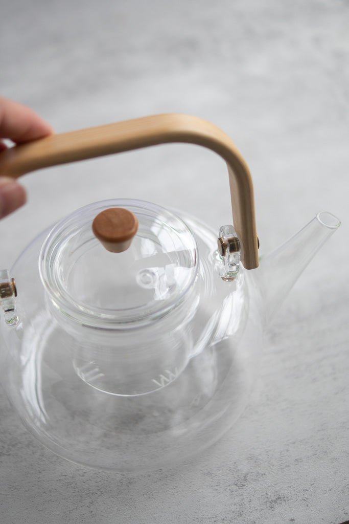 Make your freshly brewed pot of tea using this lovely glass teapot with an infuser for loose leaf tea. Made with high-quality lead-free borosilicate glass, this teapot is strong, sturdy, and high-temperature resistant. Holds 27 oz.
