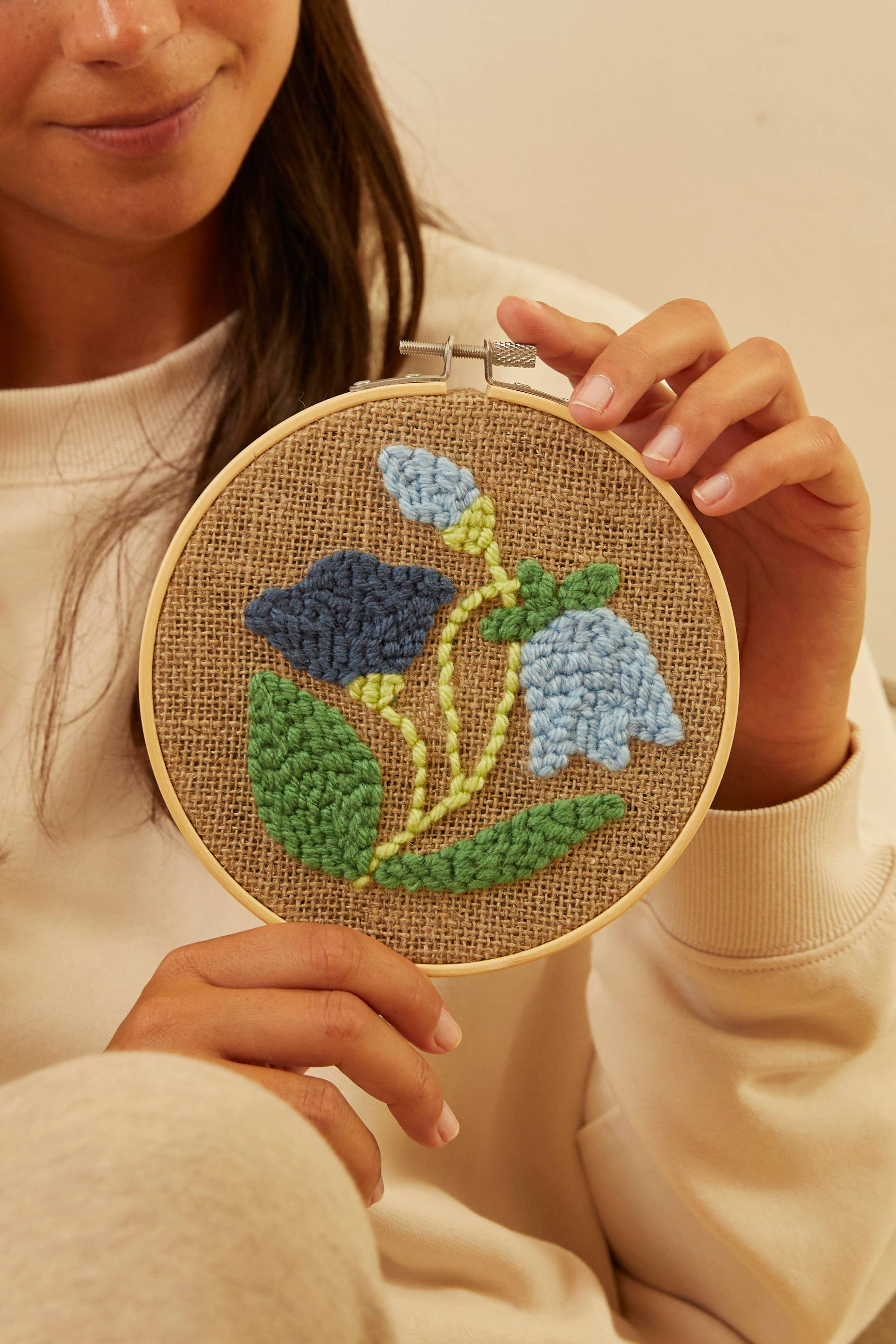 Punch Needle Kit, Blue Flowers