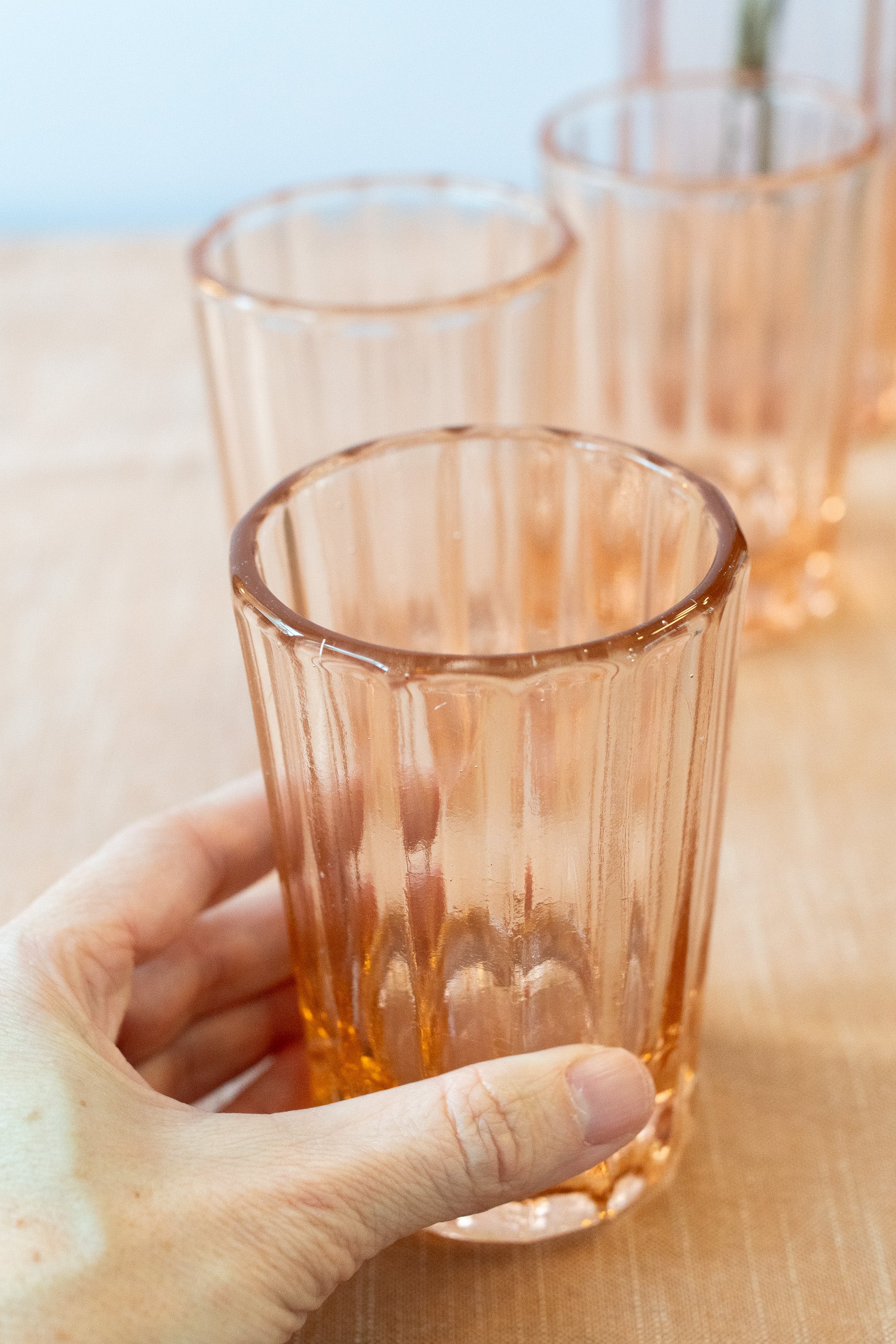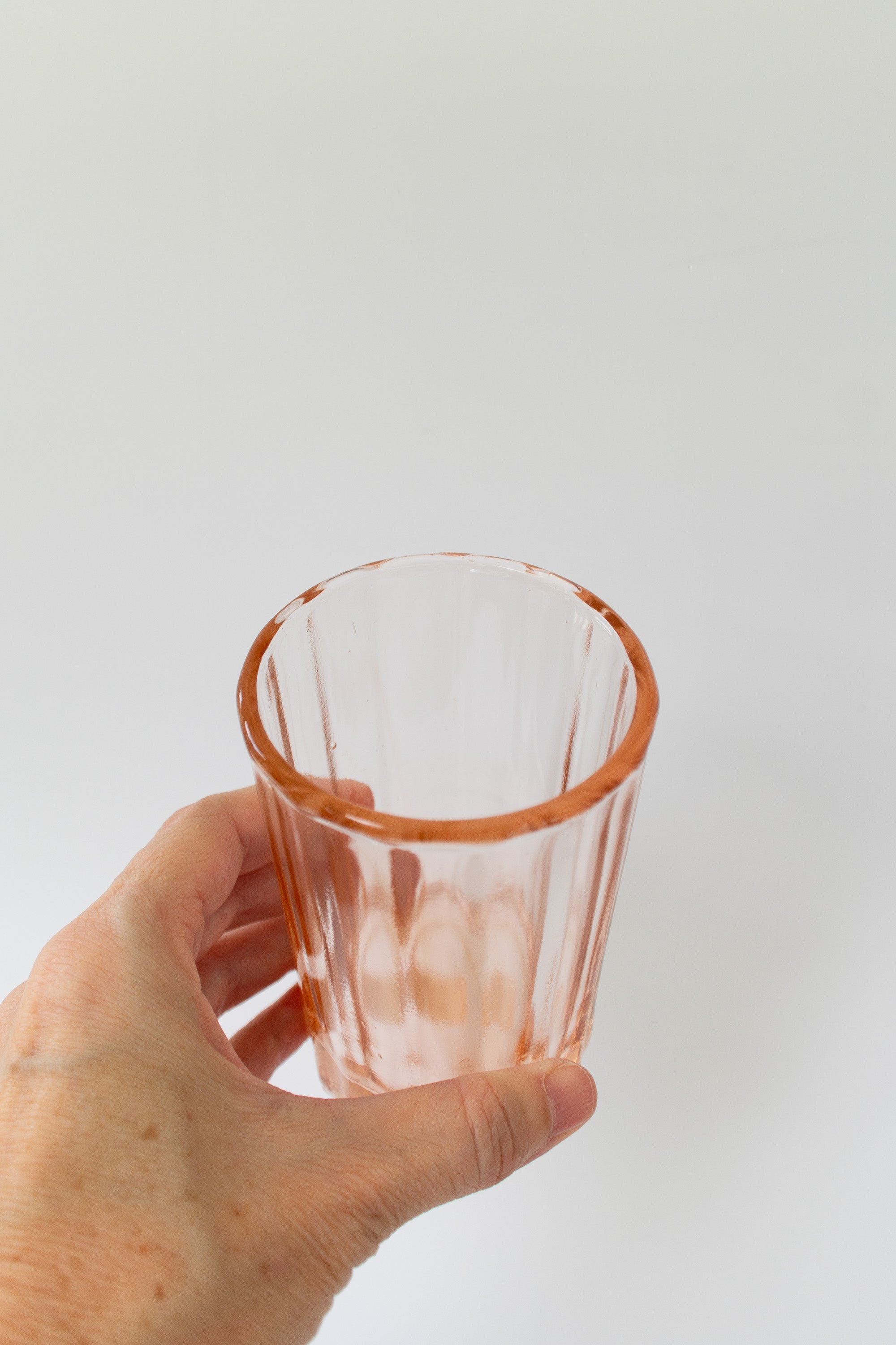 Pink Drinking Glass, Pink Depression Glass Aesthetic, Vintage Style Drinkware