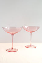 This pink champagne coupe is the perfect toasting glasses for an elegant soiree or an elegant engagement party. Serve your favorite bubbly in these gold rimmed champagne flutes, embellished with a unique colorful design. Sold as an individual glass